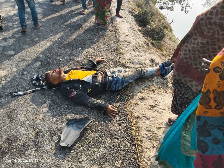 -दुर्गावती मुख्य नहर बाइपास पर अधवार मुसहर बस्ती के सामने हुई दुर्घटना -बाइक समेत पानी भरे चाट में गिरा बाइक सवार -ग्रामीणों ने नहर किनारे पानी भरे चाट में डूबी बाइक को निकाला प्रतिनिधि, मोहनिया सदर. मोहनिया-रामगढ़ पथ एनएच-319ए से मोहनिया-पटना पथ एनएच-319 को जोड़ने वाली दुर्गावती मुख्य नहर बाइपास पर अधवार मुसहर बस्ती के सामने बुधवार की सुबह दो बाइकों की टक्कर हो गयी. इसमें एक बाइक पर सवार तीन युवक घायल हो गये, जिनमें दो को गंभीर चोटें आयी हैं. घायलों को इलाज के लिए निजी अस्पताल में भर्ती कराया गया है. जानकारी के अनुसार, थाना क्षेत्र के सोंधी गांव के प्यारेलाल यादव के पुत्र संदीप कुमार एक दिन पूर्व घर आये रामपुर गांव के रहने वाले अपने मामा मोती सिंह के पुत्र प्रिंस यादव और लुरपुरवा गांव निवासी श्यामलाल यादव के पुत्र हिमांशु उर्फ दीपक यादव के साथ एक पल्सर बाइक पर सवार होकर रामपुर जा रहे थे. अधवार के समीप दुर्गावती मुख्य नहर के दक्षिण अवस्थित मुसहर बस्ती के सामने पहुंचे थे कि भभुआ निवासी संतोष मुसहर स्पलेंडर बाइक से विपरीत दिशा से मुसहर बस्ती आ रहा था. प्रत्यक्षदर्शियों के अनुसार, संतोष मुसहर बस्ती (ससुराल) की तरफ मुड़ने के लिए दाहिने तरफ चला गया, तभी पश्चिम दिशा से आ रहे पल्सर बाइक चालक संतोष को बचाने के लिए दाहिने तरफ से निकलना चाहा, तो संतोष मुसहर ने बाइक को दक्षिण तरफ मोड़ दिया. इससे दोनों बाइकों की जोरदार टक्कर हो गयी. पल्सर बाइक सवार संदीप बाइक सहित नहर किनारे पानी भरे गहरे चाट में जा गिरा. पल्सर बाइक पर सवार दीपक व प्रिंस सड़क पर गिर पड़े, जिससे प्रिंस का दाहिना पैर फ्रैक्चर हो गया, जबकि दीपक के सिर में चोट लग गयी. बाइक सहित पानी में गिरे संदीप को भी गंभीर चोटें आयी हैं, जबकि संतोष मुसहर सड़क किनारे मिट्टी पर गिरा, जिससे उसको मामूली चोट आयी है. मुसहर बस्ती के लोगों ने संदीप को पानी से बाहर निकाला, जिससे उसकी जान बच गयी. ग्रामीणों ने सभी घायलों को इलाज के लिए निजी अस्पताल पहुंचाया. सड़क दुर्घटना की जानकारी लोगों के द्वारा पुलिस को भी दी गयी. हालांकि, पुलिस के घटना स्थल पर पहुंचने से पहले ही लोग घायलों को अस्पताल लेकर गये, जहां भर्ती कर सभी का इलाज चल रहा है. घटना की जानकारी मिलते ही घायलों के परिजन भी अस्पताल पहुंच चुके थे. इधर, इस घटना के तुरंत बाद मुसहर बस्ती के लोगों ने संतोष मुसहर की बाइक छिपा दी.