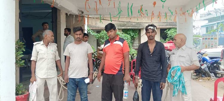 स्थानीय थाना क्षेत्र के वार्ड संख्या 16 स्थित बैंक ऑफ इंडिया के नीचे स्थित एक ग्लासेस एंड हार्डवेयर दुकान में चोरी कर रहे तीन चोरों को लोगों ने पकड़कर पुलिस को सौप दिया. जिनके पास से चोरी के एल्युमिनियम व एक बाइक बरामद की गयी. गिरफ्तार लोगों में मोहनिया शहर के चांदनी चौक वार्ड 16 निवासी राम लोचन चौधरी का पुत्र गुड्डू कुमार, मोहनिया थाना क्षेत्र के पाण्डेहरिया गांव निवासी रामचंद्र राम का पुत्र अरविंद राम व भुवाली राम के पुत्र इंद्र प्रकाश शामिल है. दुकानदार मुनेंद्र कुमार शर्मा ने बताया कि अहले सुबह करीब पांच बजे पड़ोसी से सूचना मिली कि दुकान से ठन-ठन की आवाज आ रही है. शक होने पर वे अपने परिजनों व स्थानीय लोगों के साथ दुकान पर पहुंचे तो देखा कि निर्माणाधीन भवन की दीवार तोड़कर तीन युवक दुकान के पीछे से एल्युमिनियम सेक्शन चोरी कर बाहर निकाल रहे हैं. स्थानीय लोगों की मदद से तीनों को पकड़कर पूछताछ की गयी. तीनों के पास से 20 पीस एल्युमिनियम सेक्शन बरामद हुआ. इसके अलावा घटनास्थल पर एक काले रंग की मोटरसाइकिल भी बरामद हुई. पूछताछ में आरोपी गुड्डु चौधरी ने बताया कि यह बाइक उनके साथी अरविंद राम और इंद्रप्रकाश कुमार चोरी की वारदात को अंजाम देने के लिए लेकर आया था. घटना की सूचना पुलिस को दी गयी. इसके बाद मौके पर पहुंची पुलिस ने तीनों आरोपितों के साथ बरामद सामान और मोटरसाइकिल को कब्जे में लेकर थाना ले आयी. इस संबंध में थानाध्यक्ष आलोक कुमार ने बताया एक दुकान में चोरी के मामले में तीन लोग को गिरफ्तार किया गया है.जिन्हे मेडिकल के बाद कोर्ट में पेश किया गया.