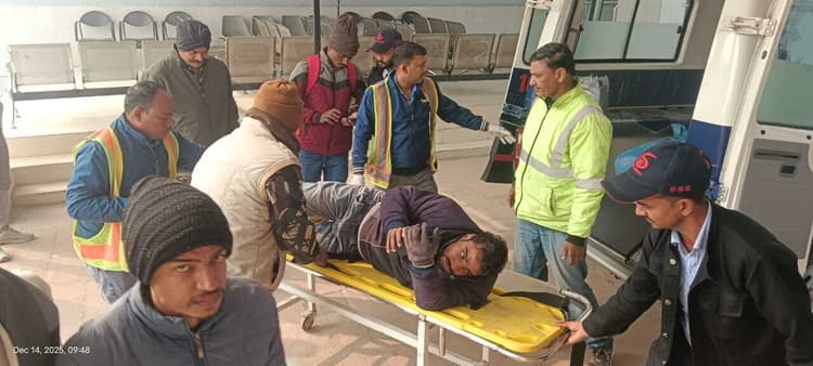 फोटो .घायल का अस्पताल में होता इलाज मोहनिया शहर. स्थानीय थाना क्षेत्र के एनएच-19 पर मुठानी के समीप रॉन्ग साइड से आ रही स्काॅर्पियो ने बाइक सवार को टक्कर मार दी, जिसमे बाइक सवार दो युवक घायल हो गये. घायलों की पहचान शुभम श्रीवास्तव (31 वर्ष), पिता सर्वेश लाल श्रीवास्तव, निवासी पचेऊला, मिर्जापुर तथा सूरज प्रजापति (20 वर्ष), पिता महेंद्र कुमार, निवासी फरहदा, मिर्जापुर के रूप में हुई है. जानकारी के अनुसार, मिर्जापुर से बाइक पर सवार होकर गुप्ता धाम दर्शन के लिए जा रहे दो युवकों को रॉन्ग साइड से आ रही एक स्कॉर्पियो ने जोरदार टक्कर मार दी. टक्कर इतनी जबर्दस्त थी कि बाइक सवार दोनों युवक गंभीर रूप से घायल हो गये. हादसे की सूचना मिलते ही एनएचएआइ की एंबुलेंस मौके पर पहुंची और दोनों घायलों को इलाज के लिए मोहनिया अनुमंडल अस्पताल लाया गया, जहां चिकित्सकों ने प्राथमिक उपचार किया. डॉक्टरों के अनुसार, दोनों युवकों के पैर में गंभीर चोट हैं, जिसके कारण उन्हें बेहतर इलाज के लिए वाराणसी रेफर कर दिया गया. इधर, घटना की सूचना पर मोहनिया पुलिस भी अनुमंडल अस्पताल पहुंची और मामले की जांच की.