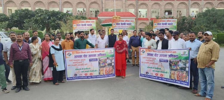 बिहार विधानसभा निर्वाचन- 2025 को लेकर जिले में मतदाता जागरूकता अभियान के तहत बुधवार को “ एक वोट लोकतंत्र के लिए ” थीम पर स्वीप गतिविधियां आयोजित की गयी. समाहरणालय परिसर स्थित वोटर सेल्फी प्वाइंट पर जिला निर्वाचन पदाधिकारी, उप विकास आयुक्त और अपर समाहर्ता, कैमूर ने सेल्फी लेकर मतदाताओं को मतदान करने के लिए प्रेरित किया. इस अवसर पर मौजूद जिला निर्वाचन पदाधिकारी सुनील कुमार ने कहा कि प्रत्येक मतदाता का एक-एक वोट लोकतंत्र को मजबूत बनाता है. उन्होंने लोगों से निर्भय होकर निष्पक्ष व शत-प्रतिशत मतदान करने का अपील की. कार्यक्रम में समाहरणालय के सभी पदाधिकारी एवं कर्मी उपस्थित रहे. सभी ने मतदान के प्रति जागरूकता को लेतक कई प्रेरक संदेश दिये.डिस्क्लेमर: यह प्रभात खबर समाचार पत्र की ऑटोमेटेड न्यूज फीड है. इसे प्रभात खबर डॉट कॉम की टीम ने संपादित नहीं किया है