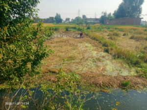बारिश के एक सप्ताह बाद भी गांव के निकट खेतों में जलजमाव