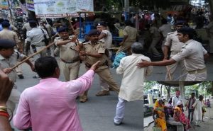 इस बीच एसडीओ नीरज कुमार, एसडीपीओ अनिल कुमार सहित अन्य अधिकारी पुलिस दल बल के साथ एसडीओ गेट के पास पहुंचे तथा मुख्य गेट को खुलवाने में जुट गये. इस दरम्यान पुलिस व आंदोलनकारियों में काफी बहस व धक्का-मुक्की होने लगी. उसके बाद सभी आंदोलनकारी एसडीओ गेट को खाली कर पुन: समाहरणालय गेट पर बढ़ने लगे. जिस क्रम में पीछे से पुलिस आंदोलनकारियों को धकेलकर जगह खाली कराने का निर्देश देते रहे. जब दोनों ओर से बहस व धक्का-मुक्की हुई तो अंतत: पुलिस ने लाठियां भांजनी शुरू कर दी. इसमें विक्टर झा सहित आधा दर्जन लोग घायल हो गये. साथ ही दर्जनों लोग पुलिस के लाठी से चोटिल होने के बाद इधर उधर भागते दिखे.