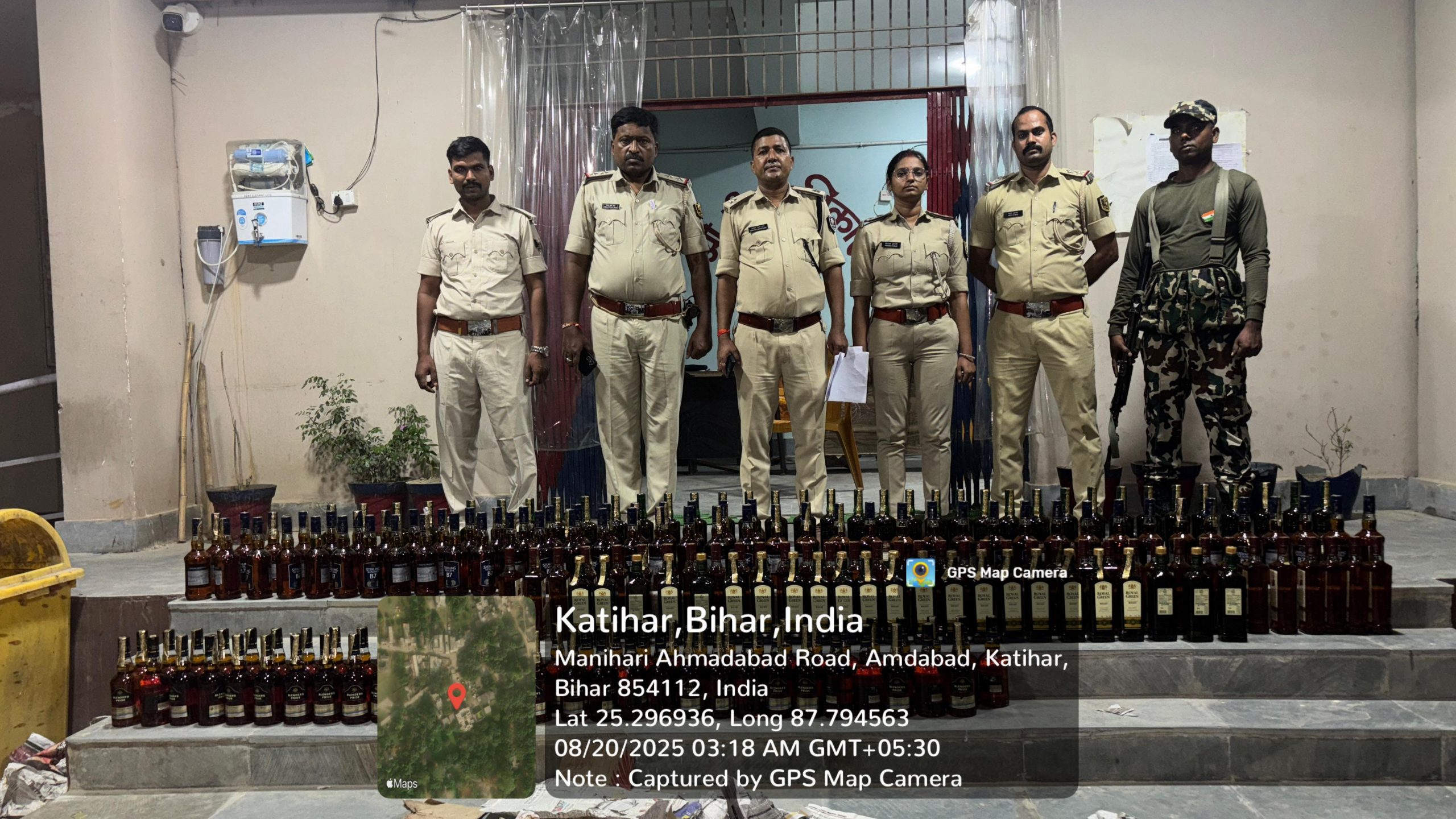 कटिहार एसपी के निर्देश पर अमदाबाद थाना पुलिस ने तस्कर के विरूद्ध कार्रवाई करते हुए एक मारूती कार से कुल 162 लीटर विदेशी शराब बरामद किया है. एसपी शिखर चौधरी के निर्देश पर अमदाबाद थाना पुलिस बंगाल व झारखंड से सटे क्षेत्र जल मार्ग एवं सड़क मार्ग पर कड़ी निगरानी के साथ साथ छापेमारी एवं वाहन एवं नाव की चेकिंग अभियान चलाते आ रही है. इसी दौरान अमदाबाद थानाध्यक्ष कुंदन कुमार को गुप्त सूचना मिला की बंगाल से नाव से पार कर लाभा में एक मारूती कार में रख कर शराब की गाड़ी अमदाबाद क्षेत्र की ओर आ रही है. थानाध्यक्ष के नेतृत्व में पुलिस बलों ने पहाड़पुर चौक की ओर छापेमारी की. पुलिस की गाड़ी को देख तस्कर गाड़ी को मोड़ना चाहा, लेकिन उसकी गाड़ी घूम नहीं पाई और वह फंस गया. इसके पश्चात आरोपित गाड़ी छोड़कर फरार हो गया. जब पुलिस ने गाड़ी की तलाशी ली तो कार से कुल 162 लीटर विदेशी बरामद किया गया. इस संदर्भ में थाना अध्यक्ष ने बताया कि गाड़ी के रजिस्ट्रेशन के आधार पर तस्कर के विरुद्ध कांड दर्ज कर पुलिस अग्रतर कार्रवाई करेगी.