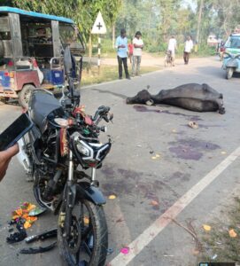 नजरा चौकी में देर रात बाइक सवार भैंस से टकराया, भैंस की मौत