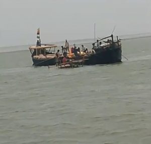 गंगा नदी में डूबा मक्का लदा नाव, बाल- बाल बचे नाव पर सवार लोग