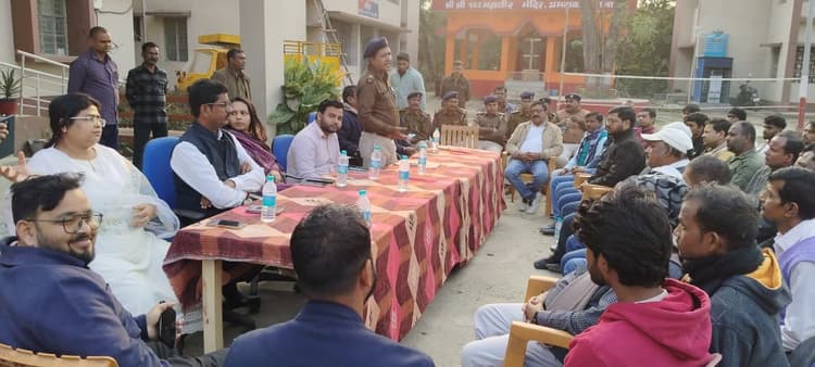 अमदाबाद अमदाबाद थाना परिसर में बुधवार को सरस्वती पूजा को लेकर थानाध्यक्ष कुंदन कुमार की अध्यक्षता एवं सीओ स्नेहा कुमारी, सीओ रणवीर कुमार के मौजूदगी में शांति समिति की बैठक आयोजित की गयी. पंचायतों से जनप्रतिनिधि एवं समाजसेवी तथा प्रबुद्ध जन सहित डीजे संचालक व पूजा कमेटी के सदस्य उपस्थित हुए थे. बीस सूत्री अध्यक्ष देवेंद्र शर्मा, मुख्य पार्षद बबलू मंडल, मुखिया श्वेता राय, तारिक हुसैन, समाजसेवी अब्दुल बारी, सीओ स्नेहा कुमारी, बीडीओ रणवीर कुमार ने उपस्थित सभी लोगों से सरस्वती पूजा शांतिपूर्ण माहौल में मनाने की अपील की. थानाध्यक्ष कुंदन कुमार ने कहा कि सरस्वती पूजा के दौरान डीजे बजाने पर पूर्ण प्रतिबंधित है. पूजा पंडाल के लिए लाइसेंस लेना अनिवार्य है. पूजा स्थलों पर पुलिस प्रशासन की पैनी नजर रहेगी. सिविल ड्रेस में भी पुलिस प्रशासन विभिन्न स्थानों पर रहेंगे. अश्लील गाना बजाने पर कानूनी कार्रवाई की जाएगी एवं सौहार्द बिगड़ने वाले बक्से नहीं जाएंगे. समाजसेवी शक्ति सिंह, शेख अतिक, एसआई सुनील कुमार सिंह, एसआई उमेश कुमार सिंह, एसआई अखिलेश बैठा, एसआई रंजीत कुमार, एएसआई जाकिर हुसैन शेख सद्दाम सहित अन्य लोग मौजूद थे.