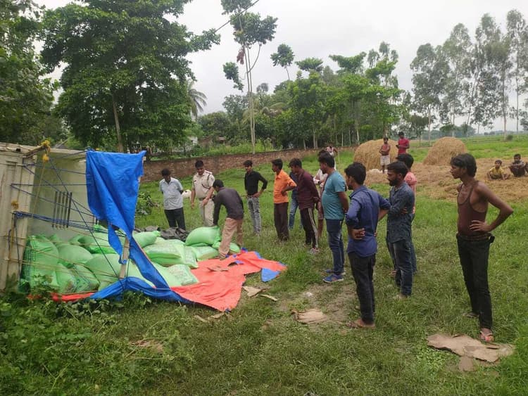 प्राणपुर थाना क्षेत्र के पकड़िया आदिवासी टोला गांव के समीप एनएच 81 मुख्य सड़क पर चौरी छिपे ले जा रहे विदेशी शराब का पिकअप वैन पलट गयी. पियक्कड़ों ने शराब की जमकर लूटपाट की. ग्रामीणों ने बताया कि विदेशी शराब लेकर चौरी छिपे ले जा रहे पश्चिम बंगाल कि ओर से तेज रफ्तार में कटिहार कि ओर जा रहे पिकअप वैन मवेशी बचाने के चक्कर में पलट गई. जिसे विदेशी शराब गड्डे में बिखर गया, विदेशी शराब को बिखरते देख कर दर्जनों पियक्कड़ों ने भरा हुआ विदेशी शराब का बोतल एवं कार्टून जिनको जितना मिला लेकर फरार हो गया. खबर मालूम होते ही प्राणपुर थाना अध्यक्ष सह पुलिस इंस्पेक्टर रंजीत कुमार घटना स्थल पर पहुंच कर पिकअप को अपने कब्जे में लेते हुए आगे कि करवाईं शुरू कर दिया है.