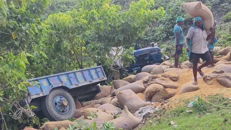 कुरसेला तीनघरिया रेल समपार ढाला के समीप रविवार को मक्का बोरा लदा ट्रैक्टर संतुलन खोकर पलटी खा गया. ट्रैक्टर के पलटी खाने से चालक व अन्य कोई घायल नहीं हुआ. पलटी खाने से मक्का का बोरा इधर उधर बिखर गया. ट्रैक्टर मक्का का बोरा लेकर मालगोदाम रैंक प्वाइंट जा रहा था.