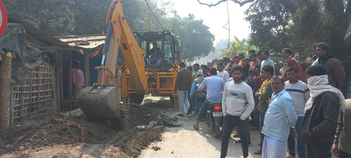 अमदाबाद नगर पंचायत अमदाबाद मुख्य बाजार में चरक स्थान से सरस्वती चौक स्थित मछली पट्टी चौक तक नगर पंचायत प्रशासन की ओर से सड़क को अतिक्रमण मुक्त किया. नगर पंचायत अमदाबाद के मुख्य बाजार में चरक स्थान चौक से विश्वकर्मा चौक तक एवं पुरानी मछली पट्टी चौक से होकर दुर्गापुर की ओर जाने वाली मुख्य सड़क में आये दिन जाम की समस्या बनी रहती थी. सड़क के दोनों किनारे दुकान सजती थी एवं स्थानीय दुकानदारों द्वारा सड़क से सटाकर बरामदा लगा दिया था और सामान रखा जाता था. जाम की समस्या काफी गंभीर हो गई थी. नगर पंचायत अमदाबाद के प्रशासन की ओर से पूर्व में अंचलाधिकारी अमदाबाद को आवेदन देकर मापी कराई गई थी. मापी के बाद सभी अतिक्रमण कारियों को नोटिस तामिला कराई गई थी. जिसमें से नोटिस पाने के बाद करीब 80% से अधिक लोग अपना जगह खाली कर चुके थे. कुछ लोग खाली नहीं कर रहे थे. शुक्रवार को नगर पंचायत अमदाबाद के स्वच्छता पदाधिकारी शैलेंद्र कुमार एवं अपर थानाध्यक्ष विजय कुमार राम, एसआई उमेश कुमार सिंह, एसआई अशोक कुमार, पीएसआई जैकी कुमार व सरकारी अमीन के मौजूदगी में शेष अतिक्रमण वाले जगह बुलडोजर चला कर खाली कराई गयी. स्वच्छता पदाधिकारी शैलेंद्र कुमार ने बताया कि चरक स्थान से सरस्वती चौक स्थित मछली पट्टी चौक तक सड़क अतिक्रमण मुक्त कराया. सड़क अतिक्रमण मुक्त कराने से स्थानीय लोगों में खुशी का माहौल था.