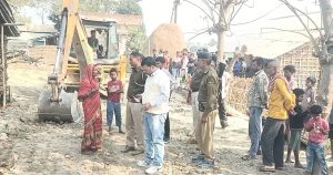 हसनगंज. प्रखंड के बलुआ पंचायत के भितिचार गांव में मंगलवार को सड़क की 11 डीसमील सरकारी जमीन पर लंबे समय से कुछ ग्रामीणों ने अतिक्रमण कर रखा था. अतिक्रमणकारियों द्वारा टीन छप्पर वाला घर बनाकर रखा था. जिसे सीओ कृष्ण मोहन कुमार व थानाध्यक्ष अनिस कुमार ने वरीय पदाधिकारी के आदेश पर जेसीबी से ध्वस्त करा दिया. मौके पर विधि व्यवस्था को लेकर काफी संख्या में पुलिस बल की तैनाती की गयी थी. सीओ कृष्ण मोहन कुमार ने बताया कि सड़क की भूमि पर लंबे समय से अतिक्रमणकारियों द्वारा अतिक्रमित कर रखा गया था. जिसके कारण लंबे समय से सड़क निर्माण कार्य बाधित था. जिसका ग्रामीणों द्वारा आवेदन दिया गया था. प्राप्त आवेदन के आधार पर विधिवत सुनवाई की गयी. सुनवाई के दौरान अतिक्रमणकारियों में सुरेश मंडल व अर्जुन मंडल जो सड़क की भूमि पर टीनन छप्पर के घर बनाए हुए थे. जिसे भूमि खाली करने का पर्याप्त अवसर दिया गया. बावजूद अतिक्रमणकारियों द्वारा भूमि खाली नहीं कराया गया. जिसके चलते सड़क निर्माण कार्य काफी दिनों से बाधित रहा. मौके पर भूमि को अतिक्रमण मुक्त कराने के लिए दंडाधिकारी से मांग की गयी. दंडाधिकारी के निर्देश के आलोक में जेसीबी के द्वारा भूमि को खाली कराया गया. भूमि खाली हो जाने से सड़क निर्माण कार्य जल्द पूर्ण होगा और लोगों को आवाजाही में सुविधा मिलेगी. इस अवसर पर प्रभारी अंचल निरीक्षक आकाश वर्मा, अंचल अमीन, पुलिस बल सहित सैकड़ों की संख्या में ग्रामीण व जनप्रतिनिधि आदि मौजूद रहे.