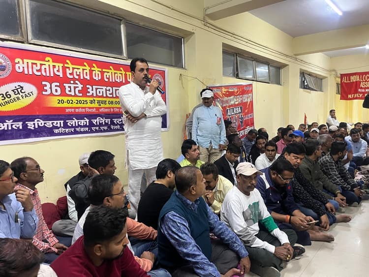 कटिहार ऑल इंडिया रनिंग स्टाफ एसोसिएशन ने क्रू लॉबी में 14 सूत्री मुख्य मांगों को लेकर 36 घंटे का भूख हड़ताल किया. एनएफ रेलवे एम्पलाइज यूनियन ने शनिवार को भूख हड़ताल के समर्थन में उतरी तथा अपनी आवाज बुलंद करते हुए कहा कि रेल प्रशासन उनकी मांगों को पूरी करें. अन्यथा लोको पायलट कार्य बाधित कर आंदोलन में उतरेंगे. एम्पलाइज यूनियन लोको रनिंग स्टाफ को हर संभव मदद करने का भरोसा दिया. इस हड़ताल को हर तरह से समर्थन देते हुए मंडल सचिव रजनीश कुमार ने अपने संबोधन के दरम्यान बताया कि 14 सूत्री मांगों को लेकर एनएफ रेलवे एम्पलाइज यूनियन के महामंत्री एवं संयुक्त महामंत्री मुनीन्द्र सैकिया को चिट्ठी लिखकर रेलवे बोर्ड स्तर पर आवाज बुलंद करने की बात कही. इस मौके पर रनिंग स्टाफ सहित एम्पलाइज यूनियन के अधिकारी व सदस्य अनुपस्थित थे.