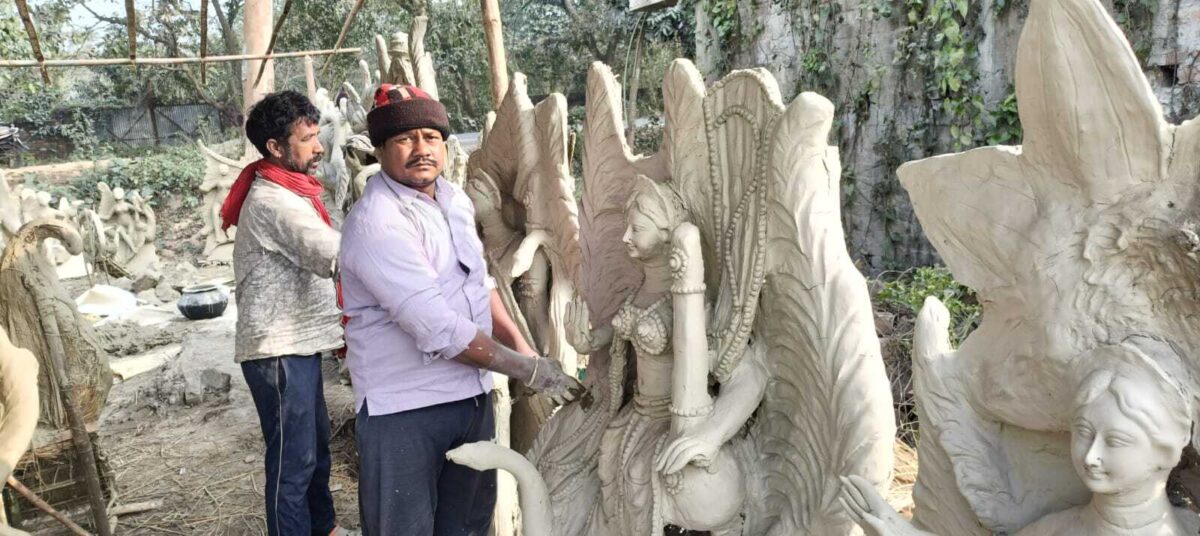 सरस्वती पूजा को ले मूर्ति को आकार दे रहे कलाकार