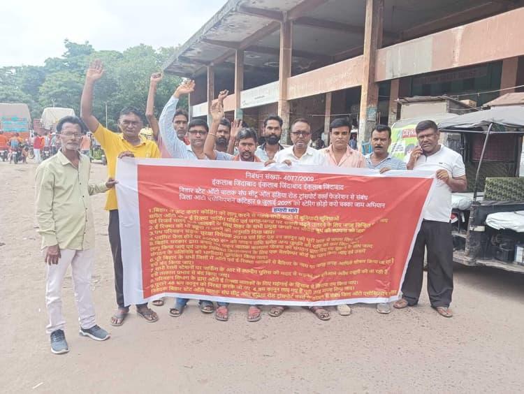 कटिहार बिहार स्टेट ऑटो चालक संघ (सीटू), ऑल इंडिया रोड, ट्रांसपोर्ट वर्क्स फेडरेशन बिहार से संबद्ध जिला ऑटो एसोसिएशन कटिहार के आह्वान पर स्टेरिंग छोड़ों-करो चक्का जाम के नारों के साथ बुधवार को ऑटो चालकों ने हड़ताल की. हड़ताल के समर्थन में जिला ऑटो एसोसिएशन के स्थानीय शहीद चौक के पास ऑटो स्टैंड पर ऑटो चालकों ने प्रदर्शन भी किया. एसोसिएशन के अध्यक्ष अजित कुमार राय व गौतम कुमार घोष ने बताया कि नौ सूत्री मांगों के समर्थन में यह राष्ट्रव्यापी हड़ताल का निर्णय लिया गया था. कहा, बिहार में रूट कलर कोडिंग को लागू करने से पहले सभी रूटों में बुनियादी सुविधाओं समेत ऑटो स्टैंड, ई-रिक्शा चार्जिंग प्वाइंट एवं जगह-जगह सवारी चढ़ाने-उतारने के लिए जगह चिन्हित करने व रिजर्व चलाने वाले चालकों के लिए शहर के सभी प्रमुख जगहों पर प्री-पेड बूथ की स्थापना, ई-रिक्शा को भी स्कूल में चलाने की अनुमति, पथ परिवहन सड़क सुरक्षा विधेयक 2019 एवं हिट एंड रन कानून को पूरी तरह से वापस लेने, परमिट फेल होने पर 20000 फाइन राशि समेत अन्य जुर्माने राशि कम करने, बिहार सरकार के वाहन चालक कल्याण योजना को संगठन द्वारा दिये गये सुझाव के साथ जल्द लागू किया जाए, वेलफेयर बोर्ड का गठन करने, संगठन के प्रतिनिधियों की भागीदारी सुनिश्चित किया जाय. पूरे बिहार के सभी जिलों में ऑटो एवं ई-रिक्शा चालकों से बैरियर के नाम पर जगह-जगह किये जा रहे आर्थिक शोषण बंद करने, रेलवे स्टेशनों पर पार्किंग की आड़ में पुलिस की मदद से सड़कों पर खुलेआम की जा रही अवैध वसूली को बंद करने, परिवहन विभाग के द्वारा ऑटो रिक्शा, ई-रिक्शा एवं मोटर कैब चालकों के लिए महंगाई के हिसाब से किराया तय किया जाय एवं पुराने 48 श्रम कानूनी को निरस्त करके प्रस्तावित नये चार श्रम कानून को पूरी तरह से वापस लिया जाय. मौके पर अध्यक्ष अजीत कुमार राय, सचिव अशोक सिंह, लक्ष्मी पासवान, उमेश नाथ, आकाश पासवान, गौतम पासवान, गौतम कुमार, शिवपूजन पासवान, मुमताज आदि कई लोग शामिल थे.