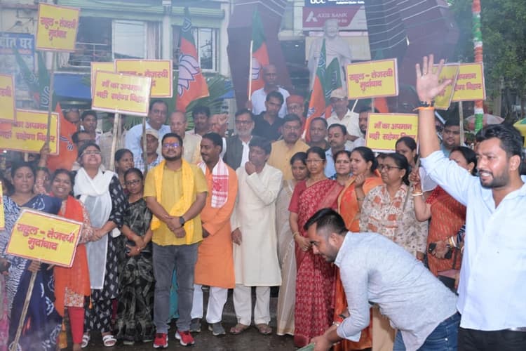 कटिहार प्रधानमंत्री नरेंद्र मोदी की दिवगंत माता के विरूद्ध राजद-कांग्रेस द्वारा अभद्र टिप्पणी के खिलाफ शहर के शहीद चौक पर शुक्रवार की देर शाम पुतला दहन कर विरोध प्रदर्शन किया गया. पुतला दहन का नेतृत्व भाजपा युवा मोर्चा के जिलाध्यक्ष गौरव कश्यप ने किया. नगर के पदाधिकारी व कार्यकर्ता पुतला दहन में शामिल होकर राहुल गांधी व कांग्रेस के विरूद्ध नारेबाजी कर विरोध प्रदर्शन किया. भाजयुमो जिलाध्यक्ष गौरव कश्यप ने कहा कि प्रधानमंत्री 140 करोड़ देशवासियों की सेवा में दिन-रात समर्पित हैं. उन पर अमर्यादित और घृणित टिप्पणी राजद-कांग्रेस की नीचता की पराकाष्ठा है. क्षेत्रीय सह प्रभारी नरेश शाह, भाजपा जिला अध्यक्ष मनोज राय, जिला प्रभारी प्रफुल्ल रंजन वर्मा, विधान पार्षद अशोक कुमार अग्रवाल, कोढ़ा विधायक कविता पासवान, महापौर उषा देवी अग्रवाल, पूर्व सांसद निखिल कुमार चौधरी, पूर्व जिला अध्यक्ष चंद्रभूषण ठाकुर, जिला महामंत्री गोविंद अधिकारी शामिल हुए. भाजपा जिलाध्यक्ष मनोज राय ने विरोध प्रदर्शन कर कहा कि यह केवल प्रधानमंत्री नरेंद्र मोदी की मां का ही नहीं बल्कि हर भारतीय मां और महिला के सम्मान पर हमला है. विधान पार्षद अशोक अग्रवाल ने कहा कि बिहार का एक-एक बेटा, हर बिहारी मां के सम्मान की रक्षा को सदैव तत्पर रहेगा. उपाध्यक्ष प्रेम प्रकाश चौधरी, गौरव पासवान, सौरभ मालाकार, महिला मोर्चा अध्यक्ष प्रियंका सिंह, अभिषेक सिंह गोलू, अंकित मालाकार, श्वेता राय, पिंटू भगत, विजय सिंह शामिल हुए.