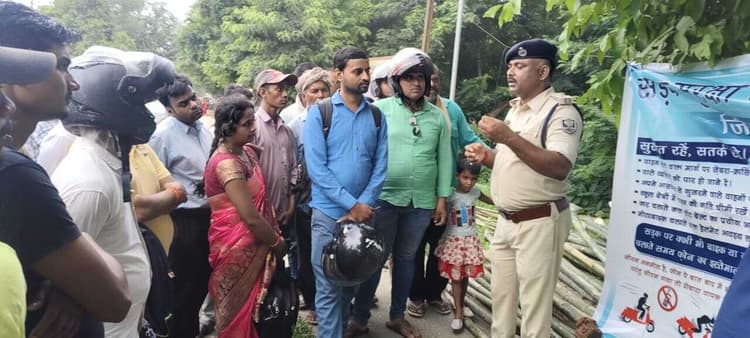 सड़क सुरक्षा को लेकर ट्रैफिक पुलिस ने चलाया जागरूकता अभियान कटिहार सड़क सुरक्षा जागरूकता अभियान को लेकर गुरुवार को एसपी के निर्देश पर ट्रैफिक पुलिस ने महिला थाना के समीप जागरूकता अभियान चलाया. इस दौरान सड़क दुर्घटना से बचाव की जानकारी दी गयी. एसपी शिखर चौधरी के निर्देश पर पुलिस निरीक्षक सह ट्रैफिक थानाध्यक्ष ने ट्रैफिक पुलिस के साथ शहर के आंबेडकर चौक एवं अन्य जगहों पर जागरूकता अभियान चलाया. इस दौरान ट्रैफिक रूल्स को लेकर होर्डिंग व बैनर लगाये गये. जिसमें स्पष्ट तौर पर मोटर चलाने के दौरान किन बातों का ध्यान रखना चाहिए यह दर्शाया गया था, ट्रैफिक नियम भी दर्शाया गया था. इसके अलावा ट्रैफिक नियम व मोटर एक्ट की जानकारी ट्रैफिक पुलिस माइक के माध्यम से आमजनों के बीच देते हुए उन्हें जागरूक कर रहे थे. बाइक चालक के लिए हेलमेट की की अनिवार्यता, कार चालक के लिए सीट बेल्ट की अनिवार्यता की बात कर लोगों को एक संदेश दे रहे थे. बिना हेलमेट के बाइक ना चलाएं. इसके अलावा ट्रैफिक रूल्स की भी जानकारी लोगों को दे रहे थे. सड़क पर बाइक हेलमेट चलकर ड्राइव करें तथा वाहन की गति अपनी नियंत्रण में रखें. सड़क पर चलते समय दाएं बाएं मोड़ते समय इंडिकेटर का प्रयोग करें. सड़क पर गति सीमा पर ध्यान रखें एवं सड़क किनारे लगाए गए यातायात संकेत बोर्ड को ध्यान में रखते हुए वाहन चलायें.