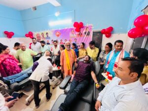 भाजपा युवा मोर्चा ने रक्तदान शिविर लगाकर किया रक्तदान