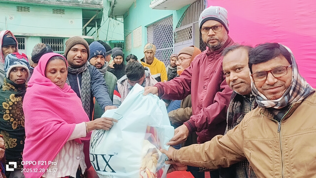 कटिहार कड़ाके की ठंड में राहत पहुंचाने के उद्देश्य से सोसाइटी फॉर ब्राइट फ्यूचर के तत्वावधान में रविवार को नासिरगंज, चौधरी मोहल्ला में कंबल वितरण कार्यक्रम का आयोजन किया गया. इस दौरान जरूरतमंद लोगों के बीच कंबल का वितरण किया. शुरुआत इमाम मस्जिद मिलन चौक में दिलावर हुसैन ने तिलावत-ए-कुरआन से की. इसके बाद एसबीएफ के कटिहार जिला संयोजक अय्यूब अंसारी ने कहा कि संस्था सालभर विभिन्न सामाजिक कार्यक्रमों के माध्यम से जरूरतमंदों की मदद करती है. उन्होंने बताया कि एसबीएफ नई दिल्ली स्थित संगठन है. जो देशभर में प्राकृतिक एवं मानव निर्मित आपदाओं के दौरान राहत एवं बचाव कार्य करती है. मास्टर सरफराज आलम, इंतजार आलम, अनवर साहिल, जीशान गनी आदि उपस्थित रहे.