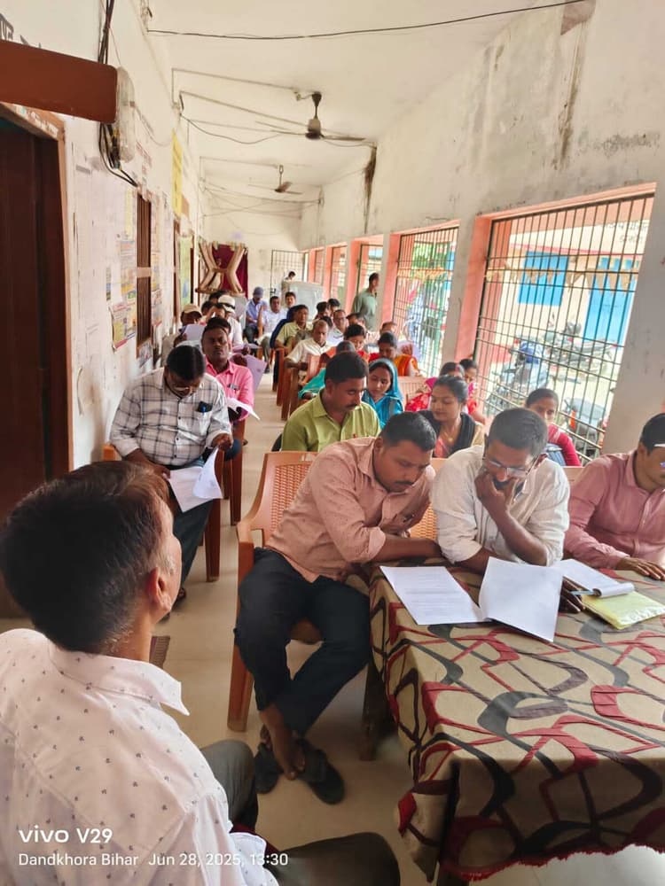 डंडखोरा आगामी विधानसभा चुनाव को लेकर प्रशासनिक स्तर से तैयारियां शुरू कर दी गयी है. शनिवार को प्रखंड मुख्यालय में परख कल्याण पदाधिकारी संजीत कुमार ने बीएलओ के साथ बैठक किया. बैठक में बीएलओ को विशेष गहन पुनरीक्षण के तहत घर घर जाकर मतदाताओं के सत्यापन करने का निर्देश दिया. मुख्य निर्वाचन पदाधिकारी व जिला निर्वाचन पदाधिकारी से जारी दिशा-निर्देश का अनुपालन सुनिश्चित करने का निर्देश दिया. कहा, 26 जुलाई तक बीएलओ सभी वोटरों के घर जाकर उन्हें फार्म देंगे तथा मतदाता से वह फार्म भरकर लेंगे. बीएलओ मतदाता से भरा हुआ फॉर्म के साथ निर्धारित दस्तावेज की स्व अभिप्रमाणित प्रति भी लेंगे तथा उसे बीएलओ एप पर अपलोड करेंगे. प्रखंड कल्याण पदाधिकारी संजीत कुमार ने बताया कि सभी 48 मतदान केंद्रो के बीएलओ को निर्धारित प्रक्रिया के तहत मतदाता सूची अपडेट करने का कार्य शुरू कर दिया गया है. अनिल कुमार साह, शिक्षक संजय कुमार विश्वास, मिथिलेश कुमार, सेविका रिंकी देवी, कुसुम लता, विकास मित्र मनीष कुमार, सतीश कुमार, अनीता देवी, ममता देवी, वंदना कुमारी, अनुराधा विश्वास सहित अन्य लोग मौजूद थे.