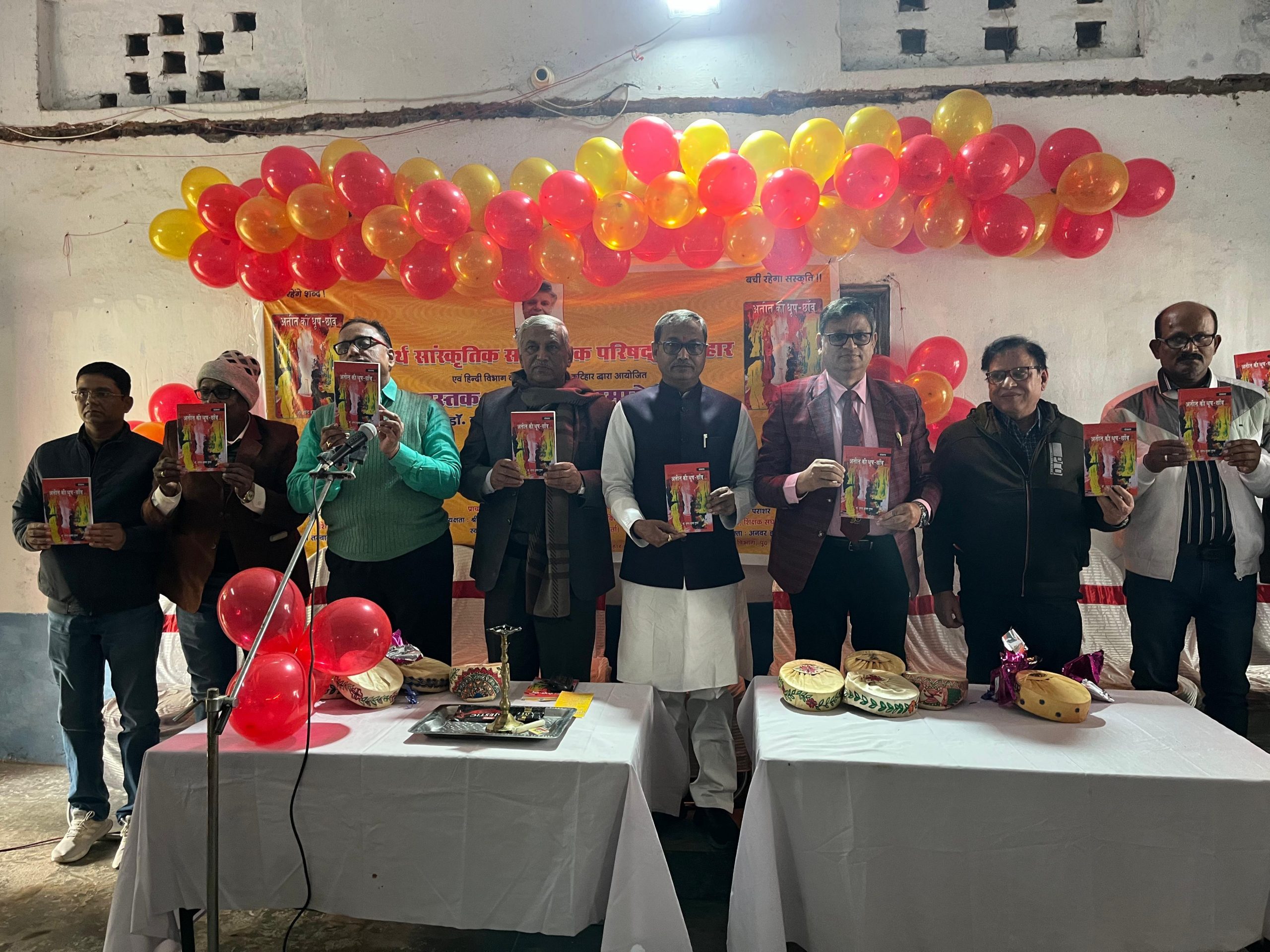 कटिहार. शब्दार्थ साहित्यिक परिषद एवं हिन्दी विभाग केबी झा कॉलेज के संयुक्त तत्वावधान में बुधवार को डॉ नृपेन्द्र कुमार गुप्ता की पुस्तक अतीत की धूप छांव का लोकार्पण पूरे उमंग और उत्साह के साथ केबी झा कॉलेज के प्रशाल संख्या छह में किया गया. मुख्य अतिथि के रूप में पूर्व सांसद दुलालचन्द्र गोस्वामी, विशिष्ट अतिथि के रूप में डॉ कामेश्वर पंकज, डॉ मनोज पराशर, ललित अग्रवाल, डॉ हरेन्द्र कुमार सिंह थे. अध्यक्षता सुरेन्द्र नारायण यादव ने की. लोकार्पण समारोह में संस्मरणकार डॉ नृपेन्द्र कुमार गुप्ता भी स्वयं मौजूद थे. पूर्व मंत्री सह पूर्व सांसद दुलाल चन्द्र गोस्वामी ने कहा कि इस पुस्तक का साहित्यिक जगत में स्वागत किया जाना चाहिए. क्योंकि इसमें वह सब कुछ है जो मनुष्य को मनुष्य बनने की प्रेरणा देती है. वक्ताओं ने इस पुस्तक पर अपने- अपने विचार रखें. यह संस्मरण अच्छा है. इनके अतीत वाला, सुख-दुख वाला सत्यता के साथ उद्घाटित किया. यह महज संयोग है कि एक चिकित्सक साहित्यकार के श्रेणी में आ खड़ा हुआ है. जहां उन्होंने पूरी सत्यता के साथ अपने जीवन प्रसंगों को उद्घाटित किया है. वक्तओं ने कहा कि अब पाठकों को तय करना है कि उनका यह संस्मरण साहित्यक जगत के लिए कितना सुखद होगा. विषय प्रवेश करते हुए डाॅ जितेश कुमार ने कहा कि यह संस्मरण निश्चित ही हिन्दी जगत के लिए एक बड़ी निधि है, जो कटिहार के लोगों को साहित्य के प्रति जागरूक करेगा. आयोजन में शामिल लोगों को संबोधित करते हुए उन्होंने कहा कि इस पुस्तक से पूरी निष्ठा के साथ जुड़ने की जरूरत है. ताकि जो भी अच्छाईयां हो उन्हें ग्रहण किया जा सके. इस अवसर पर कार्यक्रम के अध्यक्ष डॉ सुरेन्द्र नारायण यादव ने कहा कि इस पुस्तक के रूप में उन्होंने जीवन के एक सुंदर कविता लिख डाली है. कॉलेज के प्राचार्य डॉ हरेन्द्र कुमार सिंह ने कहा कि इस तरह का आयोजन निश्चित ही कटिहार के लिए एक सुखद संयोग है. जहां इतने साहित्यिक विद्वान जमा हुए हैं. यह पुस्तक जीवन के पथ को आलाेकित करता है. मौके पर जिले भर के कई शिक्षाविद व साहित्यिकार मौजूद थे.