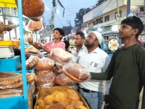 – ईद के दिन पूर्व लगे बाजार में हजारों की भीड़ खरीददारी के लिए जुटी, पैदल चलना भी हो रहा था मुश्किल कटिहार चांद का दीदार रविवार को होने के साथ ही ईद सोमवार को मनेगा. ईद से एक दिन पूर्व रविवार को लोग पर्व की अंतिम तैयारी में जुटे रहे. लोगों ने रमजान पाक महीना का रविवार को आखिरी दिन रोजा रखा. संध्या कई स्थानों पर गंगा जमुनी रिश्ते का पैगाम देते हुए हिंदू और मुस्लिम सभी मिलकर एक साथ इफ्तार भी किया सुबह बाजार में ईद पर्व को लेकर काफी चहल पहल रही. लोग पर्व की खरीदारी को लेकर बाजार में अंतिम तयारी में जुटे रहे. रविवार को अंतिम दिन भी कई लोग खरीदारी करते हुए नजर आये. मुंह मीठा करने को लेकर बाजार में सवई की खरीदारी खूब हुई. पहले से चली आ रही परंपरा के तहत ईद का त्यौहार किस खुशी का त्यौहार है. सभी का मुंह मीठा करना यह रस्म चली आ रही है. ईद पर लोगों को आमंत्रित कर सवई खिलाकर इस खुशी के मौके पर मुंह मीठा जरूर कराते हैं. चांद का दीदार होने के साथ रविवार की शाम मंगलबाजार में लगा चांद बाजार चांद का दीदार होने के साथ ही शहर के मंगल बाजार में रविवार को चांद बजार सजा.चांद बाजार में खरीदारी करने को लेकर लोगों का जनसैलाब उमड़ पड़ा था. रात भर लोग बाजार में खरीदारी करते रहे. बाजार में भीड़ इतनी ज्यादा रही कि पांव रखने तक जगह नहीं थी. कपड़े, जूते, चप्पल, साड़ियां घर को सजाने के लिए साजो सामान आदि रोजमर्रा की जिंदगी में आने वाले सामानों की बिक्री को लेकर पूरे बाजार में दुकान सजे हुए रहे. चांद बाजार नगर थाना से लेकर गांजा गली मस्जिद तक लगी थी. पूरा बाजार रंग बिरंगी लाइटों से चमक रहा था. दोपहर से ही बाजार में भारी भीड़ हो गयी. बच्चे, युवा, महिला सभी बाजार में खरीदारी को लेकर उमड़ पड़े थे. कम दरों पर सामानों के खरीदारों को अपनी ओर आवाज लगाकर आकर्षित किया जा रहा था. सुरक्षा के दृष्टिकोण से ही कई इंतजाम किए गए थे. बाजार में खरीदारी करने के लिए लोगों को किसी प्रकार की कोई परेशानी नहीं हो. नगर थाना से बाटा चौक जाने वाली सड़क के आवागमन को दोपहर से ही बेरिकेडिंग कर बंद कर दिया गया था. सिर्फ पैदल चलने वालों के लिए ही आवागमन में छूट रही. वाहन रिक्शा, टोटो, बाइक गाड़ी सभी के आवागमन पर पूरी तरह से प्रतिबंध लगा दिया गया था. बता दें कि चांद बाजार की सबसे बड़ी खासियत है कि यहां पर चांद बाजार के दिन लगने वाले बाजार में कम दरें पर अच्छी-अच्छी चीजें बिकती है. चांद बाजार के दिन दुकानदार दिल खोलकर कम दरों पर दुकान के सामान की बिक्री करते हैं. जहा लोग जमकर खरीदारी करते है.
