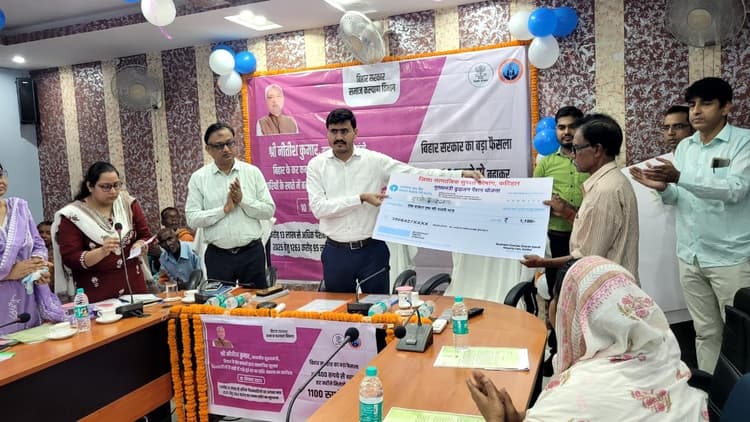कटिहार सामाजिक सुरक्षा पेंशन योजना अंतर्गत तीसरी बार नयी दर से पेंशन की राशि के अंतरण से संबंधित जिला मुख्यालय, प्रखंड मुख्यालय, ग्राम पंचायत मुख्यालय एवं राजस्व ग्राम स्तर पर कार्यक्रम हुआ. सामाजिक सुरक्षा पेंशन योजना के लाभुकों की भागीदारी सुनिश्चित की गयी. मुख्यमंत्री नीतीश कुमार ने पटना से बढ़ी हुई पेंशन की राशि का डीबीटी के माध्यम से अंतरण किया. उनके संदेश का लाईव प्रसारण समाहरणालय स्थित एनआईसी सभागार सहित जिले के सभी कार्यक्रम स्थलों पर वेब कॉस्टिंग के माध्यम से किया गया. मुख्यमंत्री संवाद कक्ष पटना से जिला के सभी प्रखंड व पंचायत एवं वार्ड स्तर पर लाइव एवं संवाद पत्र के माध्यम से संबोधित किया. कार्यक्रम में बढ़े हुए राशि के उत्साह में करीब 200 से अधिक पेंशनधारी शामिल हुए. डीएम मनेश कुमार मीणा ने पेंशनधारियों को 1100 रुपये का डमी चेक प्रदान किया. जिला सामाजिक सुरक्षा कोषांग के सहायक निदेशक यस्शवी मुख्यमंत्री का संदेश को पढ़कर सुनाया. डीडीसी अमित कुमार, जिला सामाजिक सुरक्षा कोषांग जे सहायक निदेशक यस्शवी, प्रभारी जिला प्रोग्राम पदाधिकारी नीलम कुमारी सहित जिला स्तरीय कई पदाधिकारी कार्यक्रम में शामिल थे. पेंशनधारियों ने अपने अपने बढ़े हुए पेंशन की राशि पर प्रतिक्रिया व्यक्त भी की. जिला अंतर्गत कुल 309940 पेंशनधारियों की 34,63,66,400 रुपये अंतरित की गयी है. जिला सामाजिक सुरक्षा कोषांग के सहायक निदेशक ने बताया कि वीडियो लाइव कार्यक्रम में बड़ी संख्या में पेंशनधारी शामिल हुए थे.
