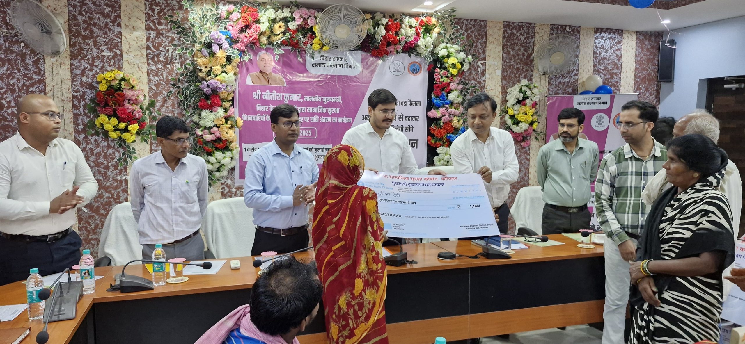 – समाहरणालय सहित 3321 स्थानों पर हुए कार्यक्रम कटिहार सामाजिक सुरक्षा पेंशन योजना अंतर्गत दूसरी बार नयी दर से पेंशन की राशि के अंतरण से संबंधित जिला मुख्यालय, प्रखंड मुख्यालय, ग्राम पंचायत मुख्यालय व राजस्व ग्राम स्तर पर कार्यक्रम हुए. सभी छह तरह की सामाजिक सुरक्षा पेंशन योजना के लाभुकों की भागीदारी सुनिश्चित की गयी. मुख्यमंत्री नीतीश कुमार ने पटना से बढ़ी हुई पेंशन की राशि का डीबीटी के माध्यम से अंतरण किया. सीएम के संदेश का लाइव प्रसारण समाहरणालय स्थित सभागार सहित जिले के सभी कार्यक्रम स्थलों पर वेब कॉस्टिंग के माध्यम से किया गया. मुख्यमंत्री संवाद कक्ष पटना से जिला के सभी प्रखंड व पंचायत एवं वार्ड स्तर पर लाइव व संवाद पत्र से संबोधित किया. समाहरणालय के सभागार में आयोजित कार्यक्रम में बढ़े हुए राशि के उत्साह में करीब 100 से अधिक पेंशनधारी शामिल हुए. जबकि जिला पदाधिकारी मनेश कुमार मीणा, महापौर उषा देवी अग्रवाल, डीडीसी अमित कुमार, जिला सामाजिक सुरक्षा कोषांग जे सहायक निदेशक अमरेश कुमार, प्रभारी जिला प्रोग्राम पदाधिकारी नीलम कुमारी, जिला पंचायतीराज पदाधिकारी योगेंद्र कुमार, जिला दिव्यांग सशक्तिकरण कोषांग के सहायक निदेशक यशस्वी, जन शिकायत कोषांग के प्रभारी पदाधिकारी अभिषेक किशोर आदि मंचासीन थे. कार्यक्रम में शामिल हुए पेंशनधारियों ने अपने- अपने बढ़े हुए पेंशन की राशि पर प्रतिक्रिया व्यक्त भी की. जिला अंतर्गत कुल 304782 पेंशनधारियों की 33,90,67,500 रुपये अंतरित की गयी है. जिला सामाजिक सुरक्षा कोषांग के सहायक निदेशक ने बताया कि वीडियो लाइव कार्यक्रम में करीब तीन लाख से अधिक पेंशनधारी शामिल हुए थे. प्रति कार्यक्रम स्थल पर पेंशनधारियों की निर्धारित संख्या 100 से अधिक रही है. सभी 3321 कार्यक्रम स्थल पर नोडल पदाधिकारी प्रतिनियुक्त थे. जिनके द्वारा मुख्यमंत्री संवाद पत्र को पढ़कर सुनाया गया. 1100 पेंशन पाकर गदगद हुए पेंशनधारी दिव्यांग पेंशनधारी खांकर पासवान ने बताया कि बढ़े हुए राशि से काफी खुशी है और इस राशि से घर के जरूरत कि सामान खरीद सकेंगे. शहर के चौधरी मुहल्ला की माला देवी पेंशन की राशि 1100 रुपये होने से उत्साहित है. उनका कहना है कि अब दवा के अलावा दूध व फल भी कभी कभार खरीद सकते है. जबकि डोमन साह ने मुख्यमंत्री वृद्धजन पेंशन योजना के बढने पर सरकार का आभार व्यक्त किया. नगर निगम क्षेत्र के पेंशनधारी लील देवी ने कहा कि इस पेंशन की राशि से आवश्यक खर्चों में काफी मदद मिलेगी. राशि के बढ़ने से उनका मन गदगद हो गया. इस तरह से उपस्थित लाभुकों में से बढ़ी हुई राशि के इन लोगों में काफी आशा जगी है. आत्म सम्मान पेंशन राशि से बढ़ा है.