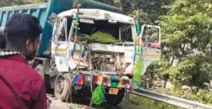खड़े हाइवा में तेज रफ्तार ट्रक ने मारी टक्कर, चालक गंभीर