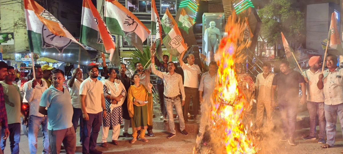 कांग्रेसियों ने शहीद चौक पर पीएम व सीएम का पुतला दहन कर जताया विरोध