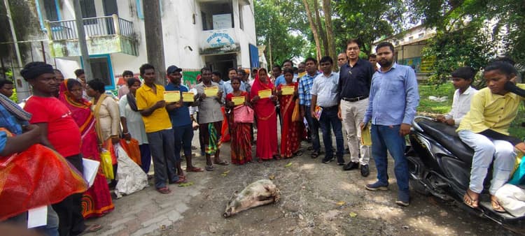 कोढ़ा जिला पशुपालन विभाग द्वारा सोमवार को सूकर विकास योजना अंतर्गत लाभुकों के बीच सूकर वितरण कार्यक्रम आयोजित किया. कोढ़ा प्रखंड के 25, बरारी के 12, कुर्सेला के 1 और समेली प्रखंड के 1 लाभुक समेत कुल 39 चयनित लाभुकों को 2 मादा एवं 1 नर सूकर प्रदान किए गए. सभी लाभुकों को यह सुविधा 90 प्रतिशत अनुदानित दर पर उपलब्ध कराया. कोढ़ा प्रथम वर्गीय पशु चिकित्सालय में आयोजित वितरण कार्यक्रम में कुल 28 किसानों के बीच सूकर शावकों का वितरण किया. किसान कुंजल हेमरम, मीरा देवी, रघुनंदन हेमरम, ललिता देवी, ताला मोय मुरमुर, संदीप कुमार उरांव और रमेश मुंडा समेत कई लाभुक शामिल रहे. जिला पशुपालन पदाधिकारी डॉ. प्रमोद कुमार मेहता मुख्य अतिथि के रूप में मौजूद रहे. उनके साथ भ्रमणशील पशु चिकित्सा पदाधिकारी सह नोडल पदाधिकारी डॉ. पढ़न कुमार, कोढ़ा प्रखंड के प्रखंड पशुपालन पदाधिकारी डॉ. विकास कुमार, बरारी के डॉ. मुकेश कुमार, समेली के डॉ. राजेश कुमार सिंह एवं कुर्सेला प्रखंड के डॉ. मुकेश कुमार भी उपस्थित थे. डॉ. मेहता ने बताया कि सरकार का उद्देश्य ग्रामीण परिवारों को आत्मनिर्भर बनाना और पशुपालन के जरिए उनकी आय को दोगुना करना है. सूकर पालन एक लाभकारी व्यवसाय है, जिसे वैज्ञानिक पद्धति से अपनाकर किसान अपनी आर्थिक स्थिति मजबूत कर सकते हैं. उन्होंने लाभुकों से लाभ उठाने की अपील की. लाभुक किसानों ने सरकार और विभाग का आभार जताते हुए कहा कि इतने बड़े स्तर पर अनुदानित दर पर सूकर उपलब्ध कराना उनके लिए सुनहरा अवसर है. अधिकारियों ने आश्वासन दिया कि विभाग समय-समय पर प्रशिक्षण, टीकाकरण और तकनीकी परामर्श उपलब्ध कराता रहेगा ताकि चयनित लाभुक योजना का अधिकतम लाभ उठा सकें.