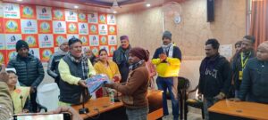 निगम के सफाई कर्मियों के बीच गर्म कपड़े का वितरण