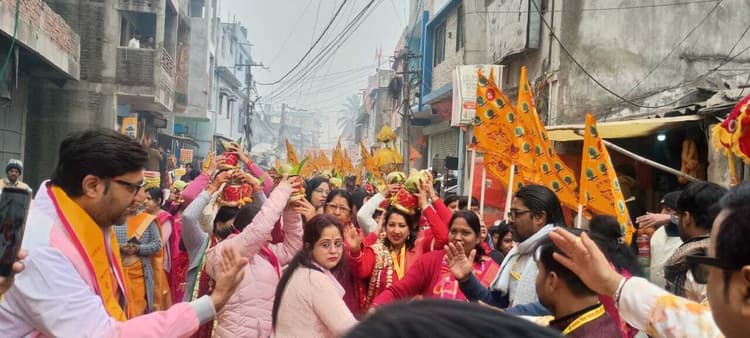 – श्री श्याम मित्र मंडल के स्वर्ण जयंती समारोह का रंगारंग आगाज कटिहार श्री श्याम मित्र मंडल कटिहार की ओर से अपने 50 वां स्थापना दिवस सह स्वर्ण जयंती महोत्सव का शुभारंभ किया गया. स्वर्ण जयंती महोत्सव का शुभारंभ शनिवार को भव्य कलश शोभा यात्रा से किया गया. यह शोभा यात्रा श्री श्याम मंदिर अड़गड़ा चौक से निकलकर शहर के प्रमुख मार्गो से होते हुए महाकथा ज्ञानयज्ञ स्थल राजेंद्र स्टेडियम पहुंची. इसमें बड़ी संख्या मे भक्तजनों की उपस्थिति रही. राधे राधे के जयकारों के गूंज एवं डीजे की धुन पर श्री राधा रानी की मधुर भजनों पर भक्त थिरक रहे थे. शोभा यात्रा मे बाबा श्याम जी का शीश, घोड़े, झांकियां , शंख वादन आकर्षण का केन्द्र रही. प्रातः काल कथा स्थल पर श्रीमद्भागवत कथा के जजमानों को सपत्नी पूजा पाठ एवं संकल्प कराया गया. कथा स्थल राजेंद्र स्टेडियम हो या यूं कहे कि पूरा शहर भक्तिमय वातावरण मे गोता लगा रहा है. अपराह्न 3.00 बजे व्यासपीठ पर विराजित हो परम पूज्य श्री गौरव कृष्ण गोस्वामी जी द्वारा ओजस्वी एवं रसमई अमृतवाणी से श्रीमद्भागवत कथा आरंभ हुआ. आचार्य सरोज भारद्वाज जी के सानिध्य मे सात दिवसीय अखंड श्री श्याम ज्योत प्रज्वलित की गयी. रात्रि बेला मे कटिहार शहर के सुप्रसिद्ध भजन कलाकारों द्वारा मधुर भजनों की रंगारंग प्रस्तुति की गयी. शनिवार को पूरे दिन के कार्यक्रम मे श्रद्धालुओं की बड़ी संख्या मे उपस्थित रही. श्री श्याम मित्र मंडल के साथ-साथ शहर के अन्य स्वयंसेवी संस्थाएं भी कार्यक्रम को सुचारू रूप से संचालित करने मे अपना महत्वपूर्ण योगदान दे रहे है. श्री श्याम मित्र मंडल के के इस स्वर्ण जयंती महोत्सव, श्रीमद्भागवत कथा ज्ञान यज्ञ को ऐतिहासिक बनाने के लिए श्री श्याम प्रेमी इस शीतलहरी मे भी श्रद्धालुओं की सुविधा को ध्यान मे रखते हुए कोई कोर कसर नहीं छोड़ रहे है. जिला प्रशासन एवं जिला पुलिस प्रशासन का भी पूर्ण सहयोग मिल रहा है. संस्था ने श्रीमद्भागवत मे आ रहे सभी श्रद्धालुओं से अनुरोध किया है कि महोत्सव स्थल पर वह अपने वाहन लेकर नहीं आये. ससमय आकर अपने स्थान को ग्रहण कर शांतिपूर्ण तरीके से भक्तिमय श्रीमद्भागवत कथा का श्रवण करें. यह कार्यक्रम एक सप्ताह तक नियमित रूप से संचालित होगी. इससे पूरा शहर भक्तिमय वातावरण में डूबा रहेगा.