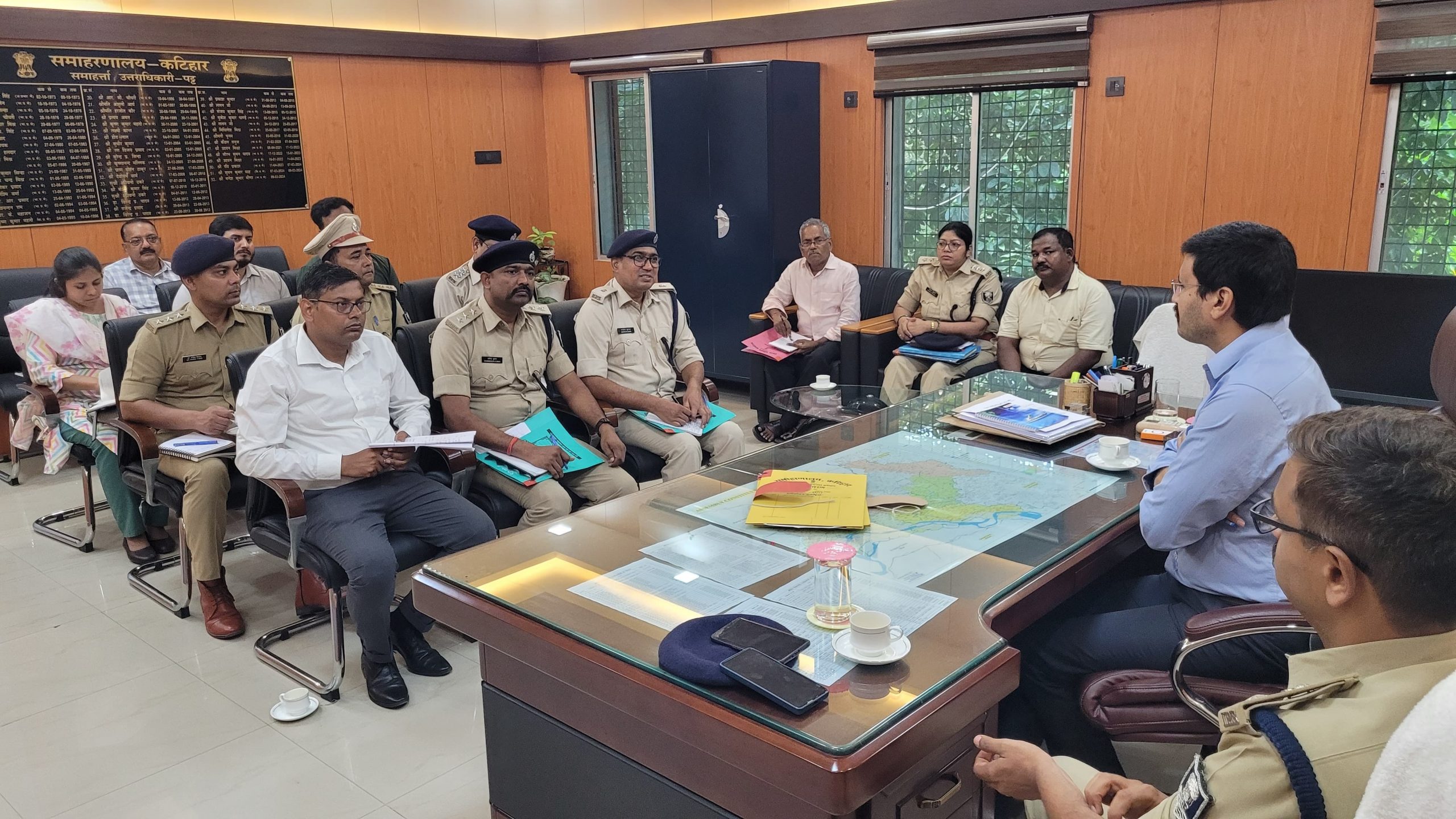 – संबंधित अधिकारियों को दिये निर्देश कटिहार समाहरणालय स्थित जिला पदाधिकारी के कार्यालय वेश्म में सोमवार को जिला निर्वाचन पदाधिकारी सह जिला पदाधिकारी मनेश कुमार मीणा एवं पुलिस अधीक्षक वैभव शर्मा के संयुक्त अध्यक्षता में आगामी बिहार विधानसभा निर्वाचन के लिए जिले में विधि व्यवस्था से संबंधित समीक्षात्मक बैठक आयोजित की गयी. बैठक के दौरान डीएम ने विधि व्यवस्था, मतदान केंद्रों का भौतिक सत्यापन के क्रम में मूलभूत सुविधाओं का सत्यापन, अर्धसैनिक बलों के आवासन के लिए स्थल चयन, एक्सपेंडिचर सेंसिटिव पॉकेट के संबंध में आवश्यक दिशा निर्देश दिया गया. साथ ही उप-निवचन पदाधिकारी को निर्देशित किया गया कि आगामी बिहार विधानसभा चुनाव को लेकर सभी प्रकार की कार्यक्रम एवं मूलभूत सुविधाएं स-समय करवाना सुनिश्चित करेंगे. बैठक में डीएम एवं एसपी के साथ-साथ सभी उप विकास आयुक्त अमित कुमार, उप-निर्वाचन पदाधिकारी पवन पासवान, अनुमंडल पदाधिकारी, सभी अनुमंडल पुलिस पदाधिकारी, सभी निर्वाचक निबंधन पदाधिकारी एवं संबंधित पदाधिकारी उपस्थित थे.