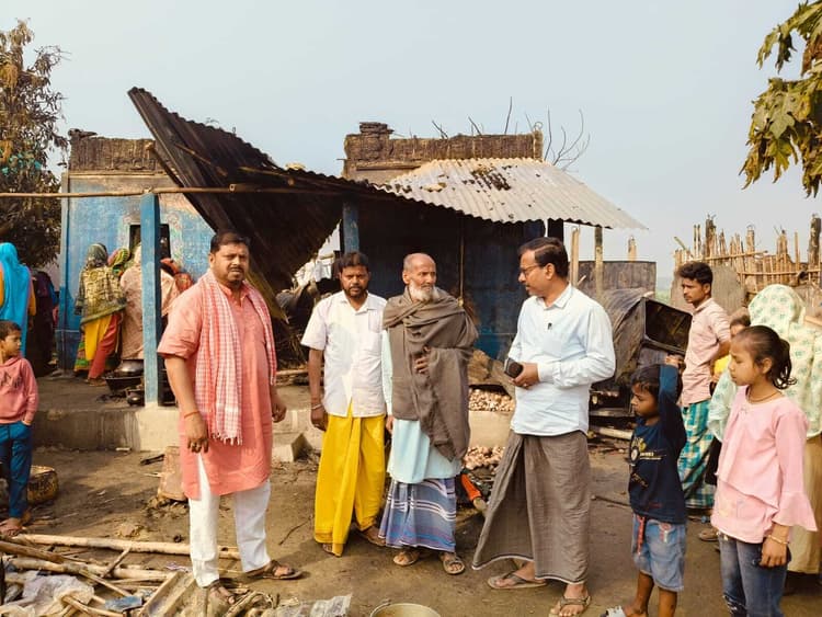 बिशनपुर में आग लगने से आठ परिवारों का घर जला