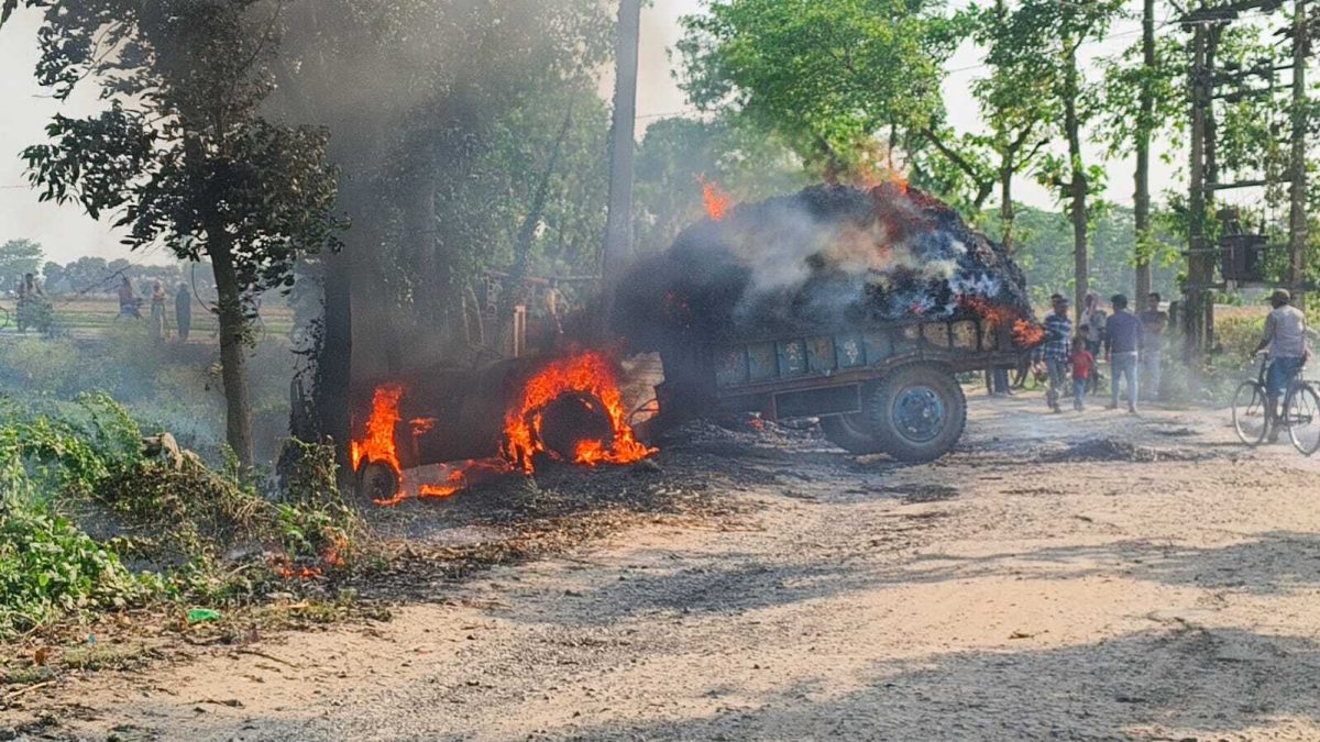 बिजली के शॉर्ट सर्किट से निकली चिंगारी से ट्रैक्टर में लगी आग, धू-धूकर जला