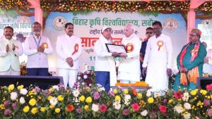 कटिहार बिहार कृषि विश्वविद्यालय सबौर में आयोजित दो दिवसीय किसान कॉनक्लेव सह किसान मेला में बिहार के राज्यपाल आरिफ मोहम्मद खां ने प्रदीप कुमार चौरसिया ग्राम मूसापुर को बिहार सरकार कृषि विभाग द्वारा संपोषित जलवायु अंतर्गत कृषि कार्यक्रम अंतर्गत किए गए विशिष्ट कार्यों के लिए उत्कृष्ट किसान सम्मान प्रदान किया. कृषि विज्ञान केंद्र कटिहार के वरीय वैज्ञानिक सह प्रधान डॉ राजीव सिंह ने बताया कि प्रदीप चौरसिया ने अपने प्रक्षेत्र पर जीरो टिलेज विधि से गेहूं, मेड़ पे मक्का एवं गेहूं की खेती कर अपनी उत्पादकता को बढ़ाया. कृषि वैज्ञानिक पंकज कुमार ने बताया कि इन्होंने जलवायु अनुकूल कृषि तकनीकों को अपनाकर खरीफ मक्का, बाजरा, मरुआ, कोदो, ज्वार की खेती कर अपने आस पास के किसानों के लिए पथ प्रदर्शक के रूप में काम किया है. बिहार कृषि विश्वविद्यालय सबौर भागलपुर के निदेशक प्रसार शिक्षा डॉ आर के सोहाने ने प्रदीप कुमार चौरसिया को उत्कृष्ट किसान सम्मान मिलने पर बधाई दी.