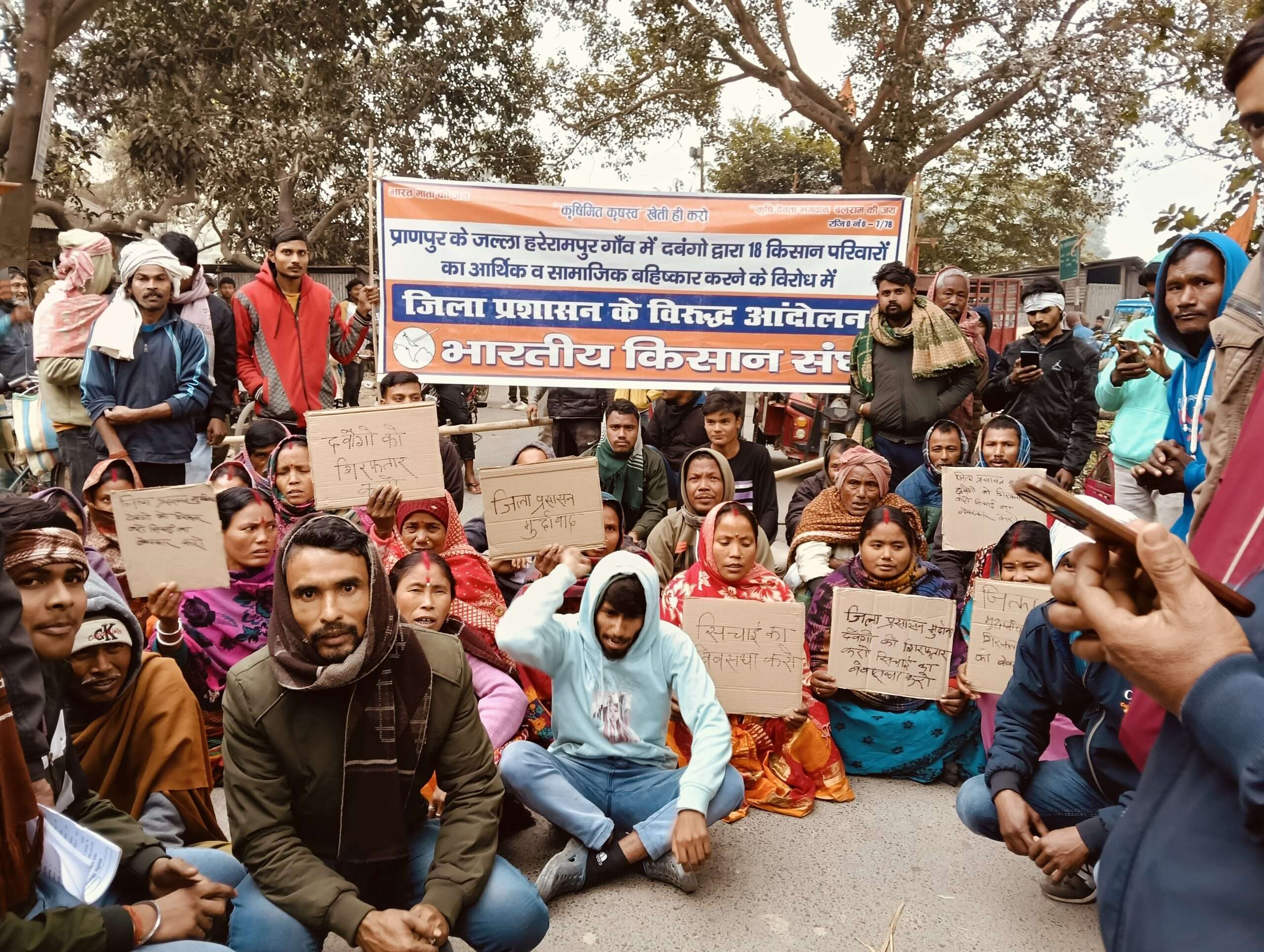 बलिया बेलौन भारतीय किसान संघ के बैनर तले सालमारी पचगाछी मोड पर सोमवार को निर्धारित कार्यक्रम के तहत एक दिवसीय धरना प्रदर्शन जिला प्रशासन के विरोध में किया. घंटों कॉलेज चौक पर जाम की समस्या बनी रही. घंटों आवागमन बाधित रहा. इससे लोगों को परेशानी हुई. प्राणपुर में दबंगों द्वारा जल्ला हरेरामपुर गांव में 18 किसानों के 90 बीघा जमीन पर लगे मक्के की फसल को नष्ट कर दिये जाने के कारण उचित न्याय नहीं मिलने के कारण एक दिवसीय प्रदर्शन का आयोजन कर न्याय की मांग की है. रावण सिंह, मनोहर सिंह, ज्ञानानंद सिंह, राजू कुमार सिंह, प्रवीण कुमार सिंह, श्रवण सिंह, उषा देवी, माला देवी, उजाला देवी, पीला देवी आदि किसान प्रदर्शन में शामिल होकर सड़क जाम कर उचित न्याय की मांग की है.