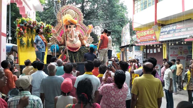 कटिहार. बड़े उत्साह के साथ बुधवार को गणेश चतुर्थी पर्व मनाया जायेगा. इसको लेकर शहर के तमाम गणेश मंदिरों में मंगलवार की देर रात तक तैयारी चलती रही. दूसरी तरफ यज्ञशाला मैदान में पांच दिवसीय गणेश महोत्सव को लेकर मंगलवार को भगवान गणेश की शोभायात्रा के साथ महोत्सव प्रारंभ हो गया. हर वर्ष की भांति इस वर्ष भी शहर के यज्ञशाला मैदान में धूमधाम के साथ पांच दिवस गणेश महोत्सव मनाया जायेगा. मंगलवार को भगवान गणेश की प्रतिमा को पूरे शहर में भ्रमण कराया गया. श्रद्धालु नाचते-गाते भगवान गणेश की जय कारा लगाते हुए शोभायात्रा में शामिल हुए. भगवान गणेश की प्रतिमा के साथ श्रद्धालु ढोल-नगाड़े की धुन पर पूरे शहर का भ्रमण किया. शोभा यात्रा शिव मंदिर चौक से निकलकर दौलत राम चौक, पानी टंकी चौक, बनिया टोला, ऋषि भवन रोड होते हुए यज्ञ शाला मैदान पहुंचकर भगवान गणेश की भव्य प्रतिमा को पूजा पंडाल में स्थापित किया गया. शोभा यात्रा में बड़ी संख्या में श्रद्धालु शामिल हुए थे. सभी भगवान गणेश के आगमन को लेकर अपनी खुशी जाहिर की. गणपति बप्पा मोरिया के जयकारे से पूरा शहर गूंजता रहा. बुधवार को वैदिक मंत्रोच्चारण के साथ भगवान श्री गणेश की पूजा अर्चना की जायेगी. संध्या महाआरती का आयोजन किया जायेगा. इस पांच दिवसीय गणेश महोत्सव में कई कार्यक्रम आयोजित किये जायेंगे. गणेश महोत्सव में भव्य श्रृंगार, महा आरती, भजन कीर्तन, भव्य रासलीला, महाभोग, शोभायात्रा भक्ति ज्ञान संगीत का आयोजन किया जायेगा. इस पूरे कार्यक्रम को सफल बनाने में श्री यज्ञशाला गणेश महोत्सव समिति के अशोक कुमार साह, शंभू अग्रवाल, दिलीप पूर्वे, राजेश महासेठ, मनीष कुमार, गोपाल वर्णवाल, भवेश मंडल, प्रमोद पोदगा, सन्नी राजपाल, आनंत साह, प्रभात साह आदि लगे हुए हैं.