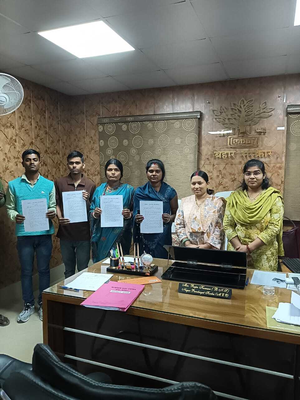 कोढ़ा कोढ़ा नगर पंचायत में स्वच्छता साथी पद के लिए पांच व्यक्तियों का चयन किया. सोमवार को नगर कार्यपालक पदाधिकारी रूपा कुमारी व स्वच्छता अपशिष्ट प्रबंधन पदाधिकारी सृष्टि सुमन ने सभी चयनित व्यक्तियों को नियुक्ति पत्र सौंपा. मुख्य पार्षद धीरज कुमार सिंह भी मौजूद रहे. स्वच्छता साथियों की नियुक्ति से नगर पंचायत क्षेत्र में स्वच्छता व्यवस्था को और सुदृढ़ किया जायेगा. यह कदम स्वच्छ भारत मिशन को गति देने के साथ-साथ नगर के नागरिकों को स्वच्छता के प्रति जागरूक करने में मदद करेगा. नगर पंचायत प्रशासन ने सभी नए स्वच्छता साथियों से ईमानदारी और समर्पण के साथ कार्य करने की अपील की, ताकि क्षेत्र को स्वच्छ और सुंदर बनाया जा सके।
