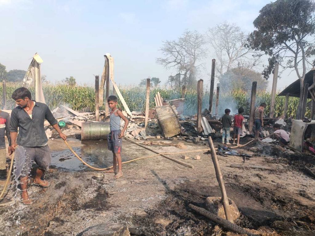 आग लगने से चार घर जलकर राख, लाखों की संपत्ति खाक