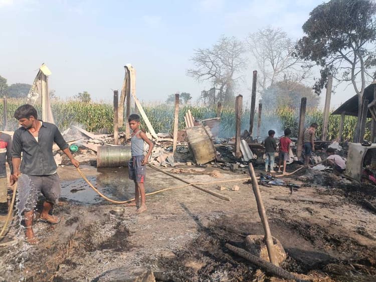 समेली प्रखंड के छोहार पंचायत में शनिवार की दोपहर खाना बनाने के दौरान आग लगने से तीन परिवारों का चार घर जलकर राख हो गया. पंचायत के मुखिया प्रतिनिधि अक्षय कुमार उर्फ गुड्डू मंडल ने बताया कि छोहार पंचायत के वार्ड संख्या नौ में दोपहर खाना बनाने के क्रम में रोहित पासवान, पुनीत पासवान व अमित पासवान तीनों पिता स्व किशन पासवान सहित झुना देवी का भी घर जलकर राख हो गया. चारों परिवार के घर में रखा खाने की सामग्री सहित कपड़े आदि जल कर राख हो गया. सूचना सीओ सहित पोठिया थाना को दी गयी. उप मुखिया संजय चौधरी, समिति सदस्य बिलास हरि, राहुल भारती, ध्रुव राय सहित ग्रमीण शामिल रहे. स्थानीय लोगों ने बताया कि अग्निसमन को फोन किया गया लेकिन दो घंटे बाद पहुंची.