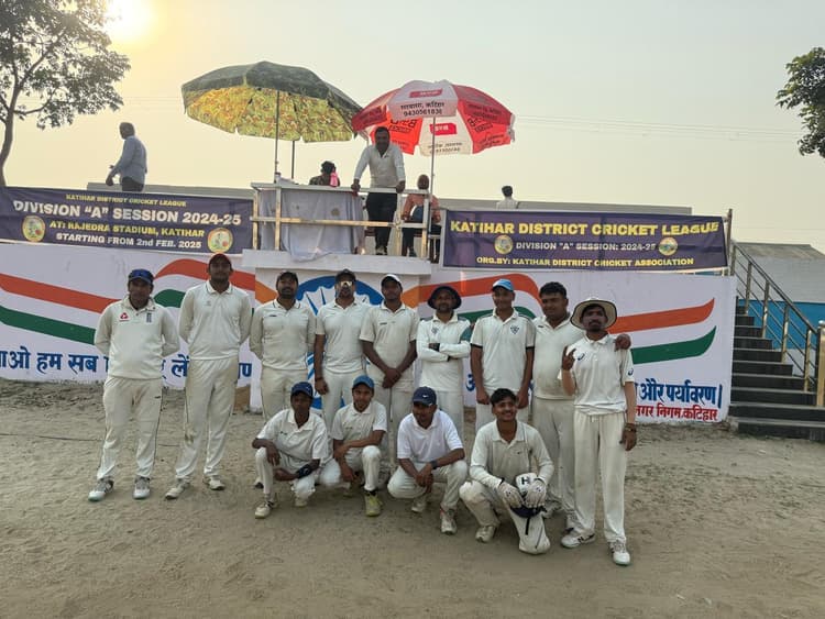 कटिहार राजेन्द्र स्टेडियम में चल रहे ए डिवीजन जिला क्रिकेट लीग में रविवार का मैच पुल ए का फ्रेंड्स क्रिकेट एकेडमी बनाम बारसोई क्रिकेट क्लब के बीच खेला गया. जिसमें फ्रेंड्स क्रिकेट एकेडमी के कप्तान हज़रत अली ने टॉस जीत कर पहले बल्लेबाजी करते हुए 40 ओवर में 8 विकेट खोकर 287 रन बनाये. फ्रेंड्स क्रिकेट एकेडमी की तरफ से आनंद यादव ने निचले क्रम पर आकर शानदार 92 रन बनाये. आदर्श कुमार ने नाबाद 52 रन व राज आर्यन यादव ने 46 रन बनाये. बारसोई क्रिकेट क्लब की तरफ से गेंदबाजी करते हुए प्रियांशु कुमार ने 3 विकेट और कप्तान सुरजीत ने 2 विकेट हासिल किया. 288 रनों के लक्ष्य का पीछा करने उतरी बारसोई क्रिकेट क्लब ने 33.2 ओवरों में 162 रन बना कर ऑल आउट हो गयी. फ्रेंड्स क्रिकेट एकेडमी की तरफ से गेंदबाजी करते हुए आनंद यादव ने तीन विकेट और अभिषेक तोमर ने दो विकेट चटकाये. मैन ऑफ द मैच का पुरस्कार आनंद यादव को उनके शानदार ऑलराउंड प्रदर्शन के लिए दिया गया. फ्रेंड्स क्रिकेट एकेडमी की टीम ने इस मैच को 125 रनों से जीत कर दो अंक हासिल किया. निर्णायक के रूप में गौतम ठाकुर व दीपक कुमार रहे सोमवार का मैच लिबर्टी क्रिकेट क्लब और सन्नी क्रिकेट एकेडमी के बीच खेला जायेगा. जिसकी जानकारी कटिहार जिला संघ के उपाध्यक्ष राकेश रंजन ने दिया.