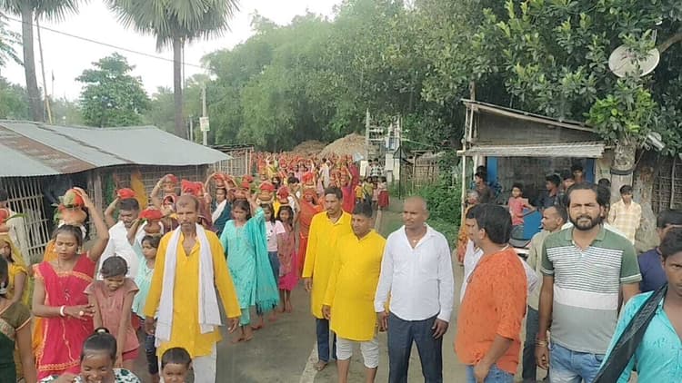फलका प्रखंड क्षेत्र के सोहथा घाट गांव स्थित बजरंगबली मंदिर परिसर में नवनिर्मित बजरंगबली मंदिर में प्रतिमा प्राण-प्रतिष्ठा को लेकर शुक्रवार की सुबह 11 बजे कलश शोभायात्रा निकाली गयी. इस यात्रा में दर्जनों ग्रामीण कन्याओं व महिलाओं ने कलश में पवित्र जल भर कर गांव भ्रमण कर मंदिर परिसर में आकर समाप्त हुई. इस दौरान जय श्रीराम व जय हनुमान के जयघोष से माहौल भक्तिमय हो गया. दोपहर दो बजे से 48 घंटे का अखंड सीता रामधुन का भी मंदिर स्थल पर आयोजन किया गया है. इस धार्मिक अनुष्ठान कार्यक्रम को सफल बनाने में ग्रामीण समाजसेवी सहित जनप्रतिनिधि शामिल हुए.