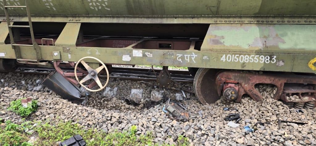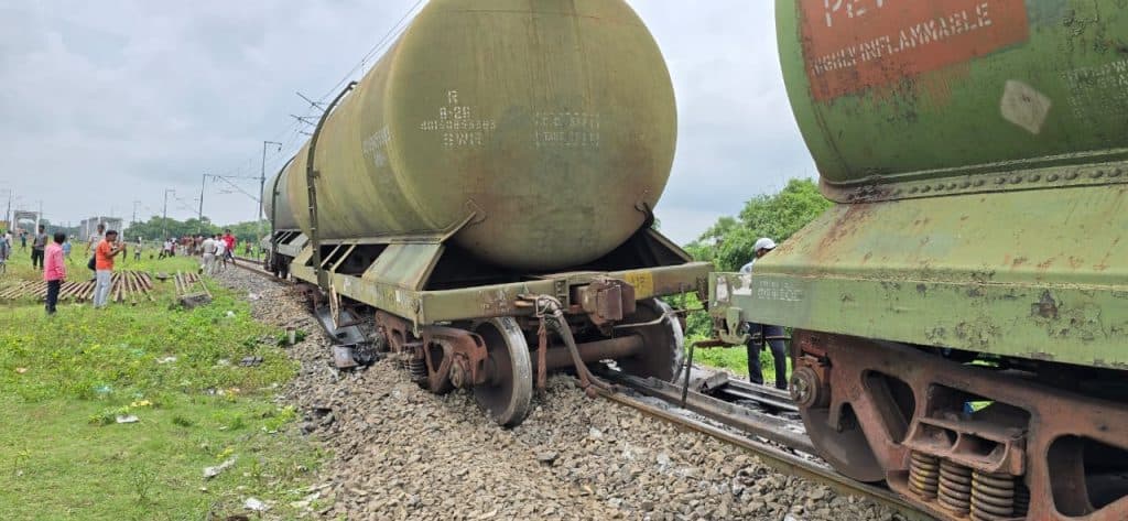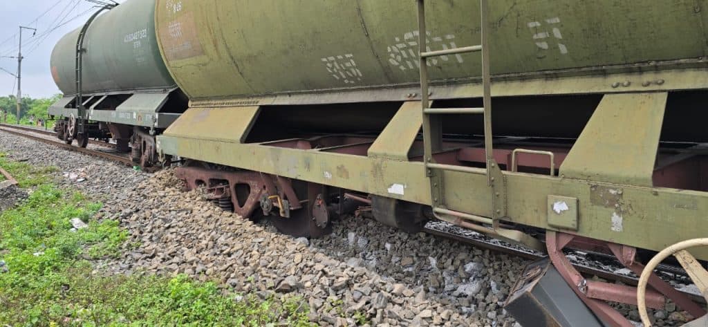 मालगाड़ी के टैंकर पटरी पर से उतरे