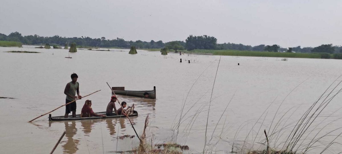 – दर्जनों गांवों में घुसा बाढ़ का पानी, चारा की किल्लत से पशुपालक परेशान – शिविर चालू नहीं होने से रूखा सूखा खाकर बाढ़ पीड़ितों की कट रही जिंदगी अमदाबाद गंगा नदी के जलस्तर में निरंतर वृद्धि हो रही है. शनिवार को 24 घंटे के अंदर गंगा नदी के जलस्तर में 16 सेंटीमीटर की वृद्धि हुई है. गंगा नदी खतरे के निशान से 85 सेंटीमीटर ऊपर बह रही है. प्रखंड में बाढ़ की स्थिति भयावह हो गई है. कई गांव बाढ़ की चपेट में है. बाढ़ पीड़ितों के बीच आवागमन से लेकर उठने बैठने की घोर समस्या उत्पन्न हो गई है. उनके समक्ष भोजन पानी से लेकर पशु चारे की समस्या गंभीर हो गई है. पशुपालक चारा की संकट से जूझ रहे हैं. प्रखंड के दुर्गापुर, भवानीपुर खट्टी, पार दियारा, दक्षिणी करीमुल्लापुर, नगर पंचायत अमदाबाद के मुरलीराम टोला, भोलामारी, मेघु टोला, लक्खी टोला, बालमुकुंद टोला, हरदेव टोला, बलुआ, पासवान टोला, गोपालपुर सीज टोला सहित दर्जनों गांव में बाढ़ का पानी प्रवेश कर गया है. ग्रामीण सड़कें सहित मुख्य सड़कों पर बाढ़ का पानी बह रहा है. कई स्थानों पर नाव का परिचालन हो रहा है. लोग नाव से प्रखंड मुख्यालय तक आवागमन कर रहे हैं. निरंतर गंगा नदी के बढ़ते जल स्तर को देखते हुए पीड़ित ऊंचे स्थानों की ओर रुख करने लगे हैं. सब अधिक आवागमन एवं पशु चारा की समस्याएं उत्पन्न हो गई है. बाढ़ के कारण लोक संक्रमित रोग से ग्रसित होने लगे हैं. बाढ़ पीड़ितों के लिए एवं बाढ़ के पानी से घिरे लोगों किस समक्ष कई तरह की गंभीर समस्याएं उत्पन्न हो गई है. हालांकि आवागमन की दृष्टिकोण से अंचलाधिकारी ने आठ स्थानों पर नौका परिचालन कराई है. लेकिन संबंधित स्थान पर एक भी नौका का परिचालन दिखाई नहीं दे रहा है. यहां तक किसी सरकारी स्तर पर चलाई गई नाव में लाल झंडी भी नहीं लगाई गई है. स्थानीय लोग गैर सरकारी नाविक के नाव पर सवार होकर आवागमन करते हैं. गैर सरकारी नाव वाले व्यक्ति लोगों से अधिक पैसा ऐंठ भी रहे हैं. टीन के बने जुगाड़ नाव पर लोग जान जोखिम में डालकर आवागमन करने को विवश है. छोटी जुगाड़ नाव पर कई लोग सवार हैं, जो काफी जोखिम भरा है. बड़ी दुर्घटना का आमंत्रण भी दे रही है. इस दिशा में प्रशासन उदासीन बनी हुई है.