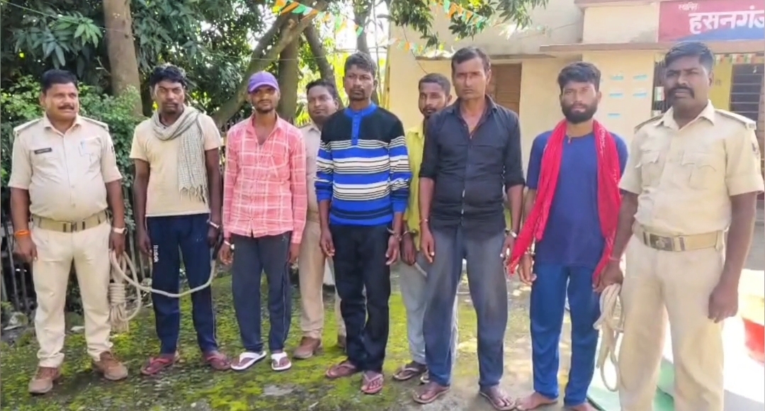 हसनगंज थाना क्षेत्र के संठीबाडी़ व जामुन टोल मोड़ से पुलिस ने गुप्त सूचना पर शराब पीकर हो हंगामा करने के आरोप में छह शराबियों को गिरफ्तार किया है. गिरफ्तार सभी अभियुक्तों को पुलिस ने गुरुवार की दोपहर लगभग दो बजे न्यायिक हिरासत में कटिहार भेज दिया. थानाध्यक्ष निक्की कुमारी ने बताया कि मनोज राय पिता राजेंद्र राय, रामनगरबंशी रामा टोला, अबूल हुसैन पिता सुलेमान, मननपुर, सोनू कुमार पिता कैलू उरांव, मुन्ना उरांव पिता जोगेंद्र उरांव दोनों गोदैया, रामचंद्र यादव पिता देवनारायण यादव महमदिया व रंजीत उरांव पिता गांधी उरांव नारियल बाड़ी सभी थाना हसनगंज संबंधित मोड़ पर शराब पीकर हो हंगामा व शोर शराबा कर था. पुलिस ने शराब के नशे में धुत गिरफ्तार किया है