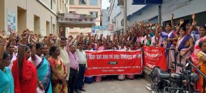 मांगों को ले स्वास्थ्य कर्मियों व आशा ने सीएस कार्यालय के पास किया प्रदर्शन