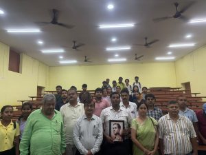डीएस कॉलेज में मनाया गया राष्ट्रीय खेल दिवस कटिहार हाॅकी के जादूगर के नाम से जाने वाले हॉकी खिलाड़ी पद्मभूषण मेजर ध्यानचन्द की जयंती पर हर वर्ष राष्ट्रीय खेल दिवस मनाया जाता है. राष्ट्रीय खेल दिवस के अवसर पर डीएस कॉलेज, कटिहार में एक विशेष कार्यक्रम का आयोजन किया गया. इस अवसर पर उपस्थित सभी शिक्षकों ने मेजर ध्यानचन्द के चित्र पर पुष्प अर्पित कर उन्हें याद किया. अध्यक्षता महाविद्यालय के प्रधानाचार्य प्रो डाॅ प्रशांत कुमार ने की. स्वास्थ्यपरक जीवन शैली अपनाने का आग्रह किया. समारोह में प्रो. (डा.) विनोद कुमार ओझा, डॉ विलास कुमार झा, डॉ मदन कुमार झा, डॉ अनवर हुसैन, डॉ शीला कुमारी, प्रो रतन कुमार दास, डॉ अजीत आनंद, डॉ शिव प्रकाश राय, डॉ मिथिलेश कुमार, डॉ उदय शंकर, डॉ विवेकानंद स्वामी, डॉ रंजीत कुमार दास, डॉ जितेंद्र वर्मा सहित अनेक शिक्षक उपस्थित थे. डॉ मदन कुमार झा ने मेजर ध्यानचन्द के जीवन और उनकी उपलब्धियों से प्रेरणा लेने का आह्वान किया. मंच संचालन का दायित्व डॉ अजीत आनंद ने सफलता पूर्वक निभाया.