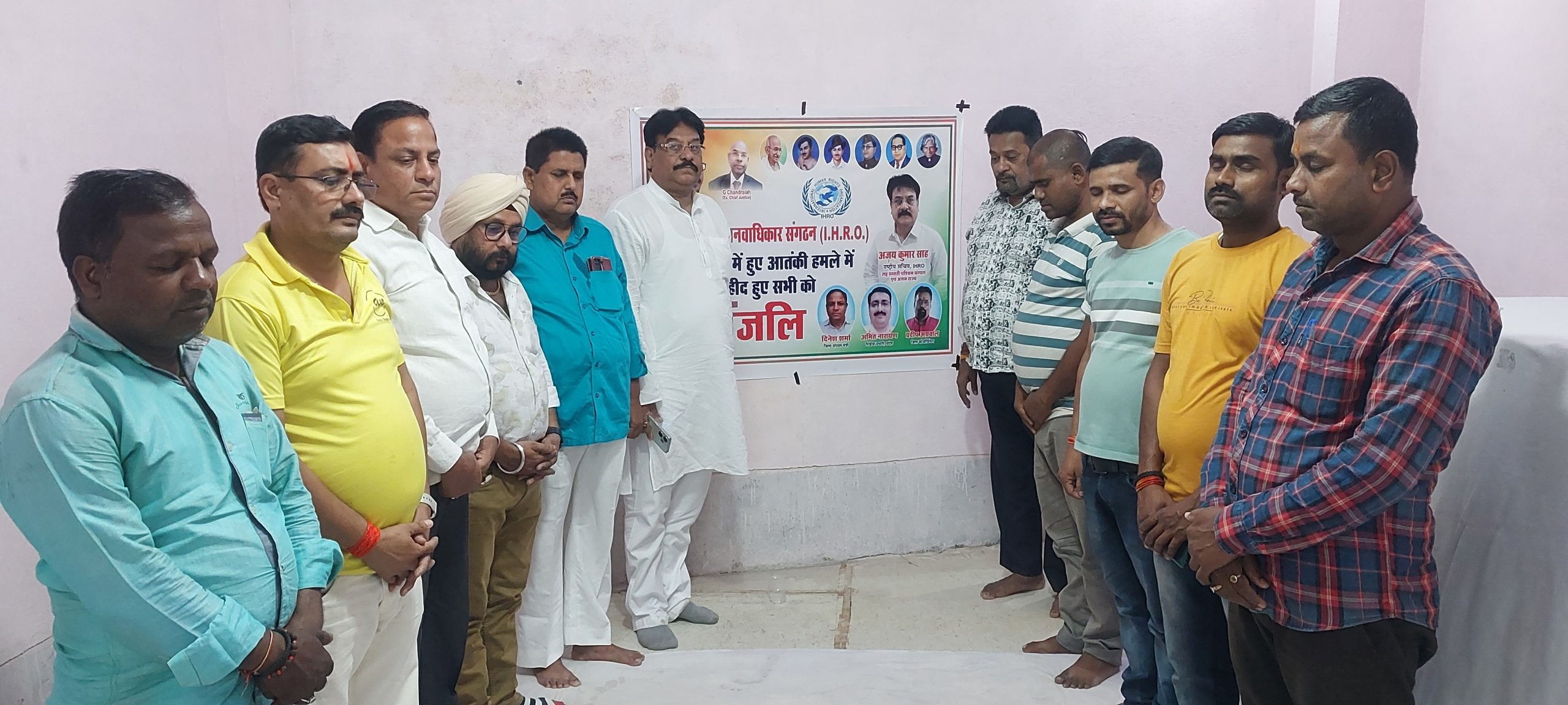 कटिहार शहर के चुना गली में अंतरराष्ट्रीय मानवाधिकार संगठन ने पहलगाम में हुए कायराना आतंकी हमले में मारे गये लोगों की आत्मा की शांति के लिए श्रद्धांजलि सभा का आयोजन किया. इस सभा का नेतृत्व संगठन के राष्ट्रीय सचिव अजय कुमार साह ने किया. सबों ने दो मिनट का मौन धारण कर मृत आत्मा की शांति के लिए ईश्वर से प्रार्थना की. संगठन के राष्ट्रीय सचिव अजय कुमार साह ने कहा यह हमला न केवल मानवता के विरुद्ध अपराध है. बल्कि भारत की आत्मा पर चोट है. हमारी मांग है कि प्रधानमंत्री, गृह मंत्री, रक्षा मंत्री अब आतंक के खिलाफ करे निर्णायक कार्रवाई की जाय. आतंक के आखिरी ठिकानों तक पहुंचकर उनका समूल सफाया कर देना चाहिए. देश की जनता अब और सहन नहीं कर सकते, समय आ गया है. जब हम सिर्फ निंदा नहीं बल्कि ठोस कार्रवाई की प्रतीक्षा कर रहे हैं. संगठन के प्रदेश मीडिया प्रभारी अमित नारायण, जिला कार्यकारी अध्यक्ष चन्द्र भूषण सिंह, जिला संगठन मंत्री दिनेश शर्मा, जिला संयोजक प्रदीप अग्रवाल, संतोष कुमार गुप्ता, शंकर लाल पोद्दार, अशेश्वर प्रसाद गुप्ता आदि उपस्थित थे.
