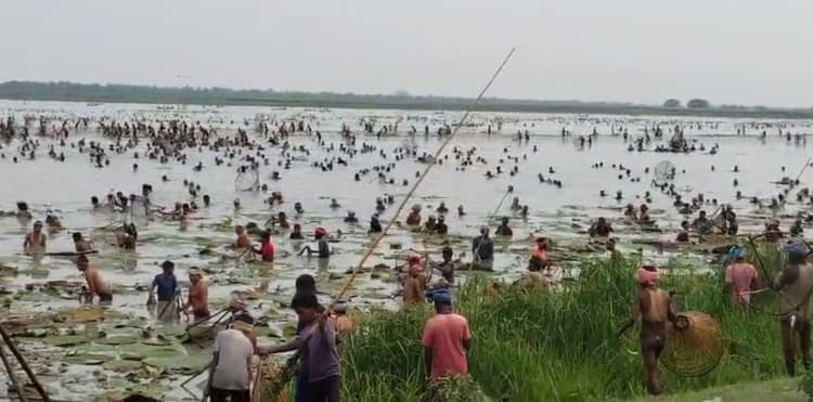 – इस झील में शिकार करने पर है रोक, बावजूद हो रहा शिकार अमदाबाद अमदाबाद प्रखंड के जंगला टाल पंचायत स्थित गोगा बील झील में अवैध रूप से सिरवा पर्व के दौरान सैकड़ों की संख्या में लोग माही शिकार करने उतर गये. विभागीय एवं प्रशासनिक आदेश की अनदेखी कर अवैध रूप से माही शिकार करने के लिए लोग बड़ी संख्या पहुंचे. आलम यह था की झील में केवल माही शिकार करने वाले लोग ही नजर आ रहे थे. मौके पर अमदाबाद एवं मनिहारी पुलिस भी पहुंची थी. इसे लेकर गोगा बिल झील कम्युनिटी रिजर्व प्रबंध समिति कटिहार के अध्यक्ष अजीत प्रज्ञा कुमार एवं सदस्य रईशुदुद्दीन ने संयुक्त हस्ताक्षर कर 10 अप्रैल को जिला पदाधिकारी कटिहार को पत्र देकर कहा कि सिरवा पर्व को लेकर 11 अप्रैल से 14 अप्रैल तक इस झील में लोगों द्वारा माही शिकार की संभावना है. जिससे झील के जैव विविधता पर प्रतिकूल असर पड़ता सकता है. इसे लेकर उन्होंने कहा कि पर्यावरण वन एवं जलवायु परिवर्तन विभाग बिहार सरकार द्वारा इस झील में माही शिकार एवं चिड़िया का शिकार करना प्रतिबंधित है. मुख्यमंत्री नीतीश कुमार द्वारा 29 जनवरी 2025 को झील का हवाई सर्वेक्षण कर इसे पर्यटन स्थल के रूप में विकसित करने एवं इसका संरक्षण करने का घोषणा किया गया था. गौरतलब हो कि गोगा बिल झील कम्युनिटी रिजर्व प्रबंध समिति के अध्यक्ष व सदस्य द्वारा जिला पदाधिकारी को लिखित पत्र देने के बावजूद भी गोगा बिल झील में बड़ी संख्या में लोगों द्वारा माही शिकार किया जा रहा है. बड़ी संख्या में लोगों ने विभागीय निर्देशों को दरकिनार कर एवं बिना प्रशासनिक भय के झील में माही शिकार करने पहुंचे हैं. इस तस्वीर में स्पष्ट रूप से देखा जा सकता है कि बड़ी संख्या में लोग माही शिकार के लिए गोगा बिल झील में उतरे हुए हैं.