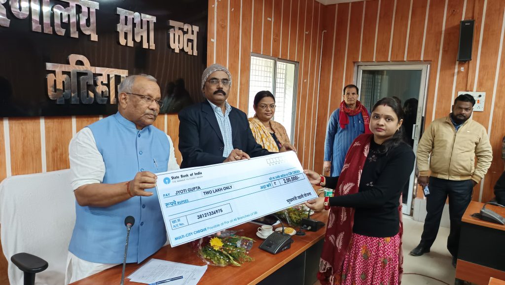 Katihar news : उद्योग विभाग ने 12 युवाओं को सौंपा एक-एक लाख रुपये का चेक